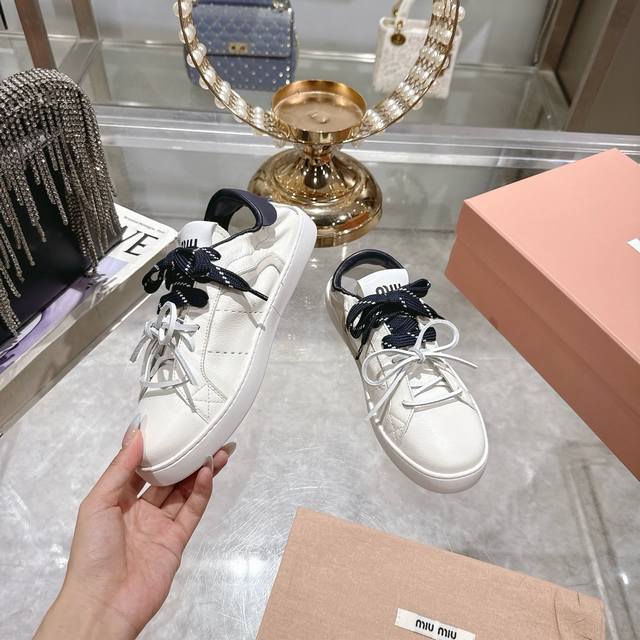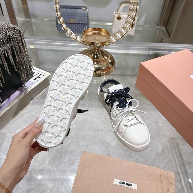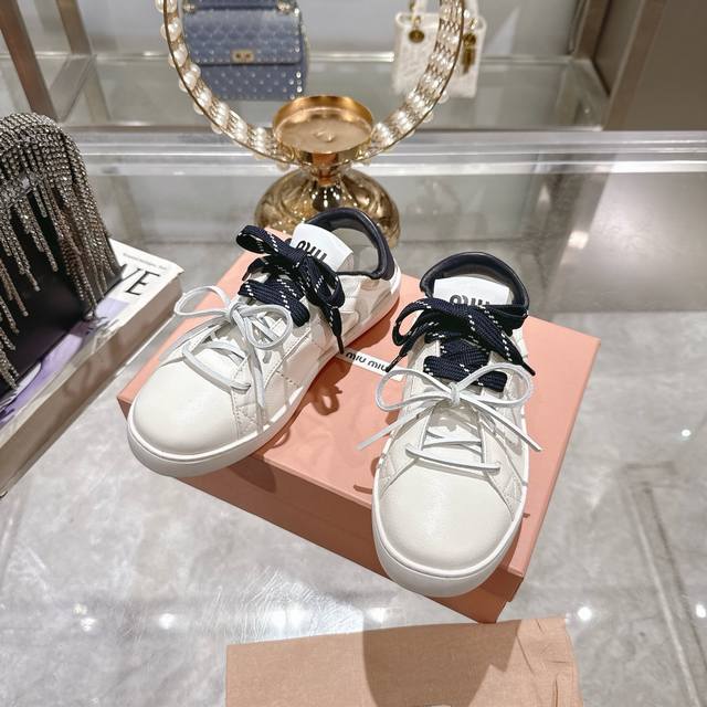 出厂 顶级版本 Miumiu|缪缪25K 新款系带小白鞋德训鞋休闲鞋 这款美拉德风小白鞋运动鞋妥妥的美式休闲风格~日常穿着怎么搭都好看 上脚超级好看舒适经典百搭的绝绝子单品! 面料:进口订制粒面牛皮 内里:进口羊皮 大底:原版开模橡胶大底 码数:35-39 40.41订做不退换