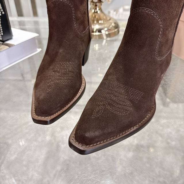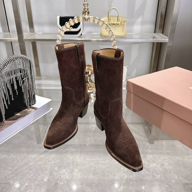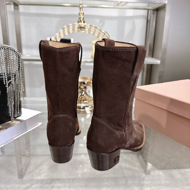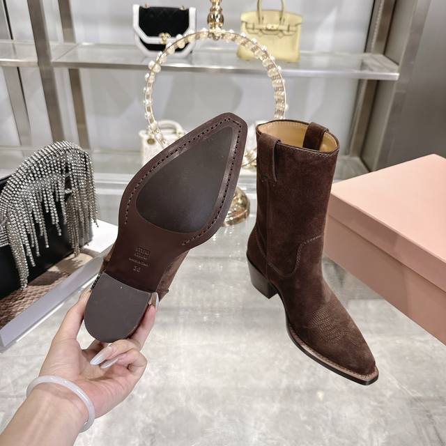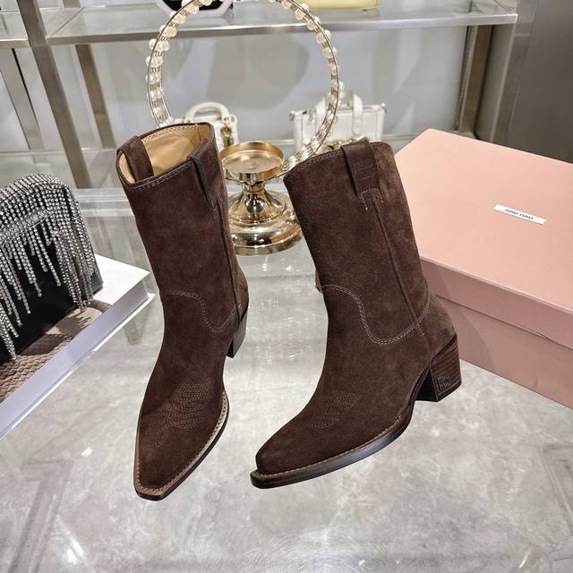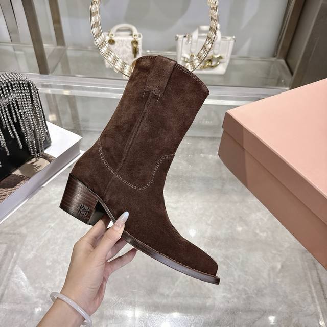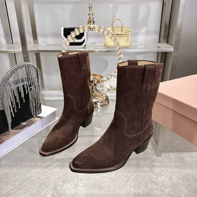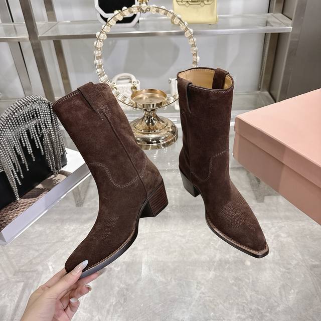 出厂 Miu 25新款 New Arrival 缪缪新款 四季靴 复古经典牛仔机车靴造型 代购级别断货王爆款 造型松弛感限量走秀款一双封神复古做旧拉丝工艺复古做旧 高级电绣工艺 怎么穿都好看今年时髦精最爱 超级重工 每一双都是独一无二不对寸的拉丝做旧复古效果 注塑真皮大底 面料 进口牛皮 内里 进口牛皮 大底意大利真皮大底注射 跟高5.5Cm Size:# 35-40 40订做不退不换