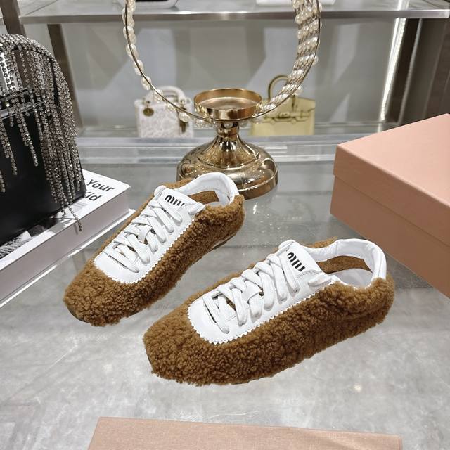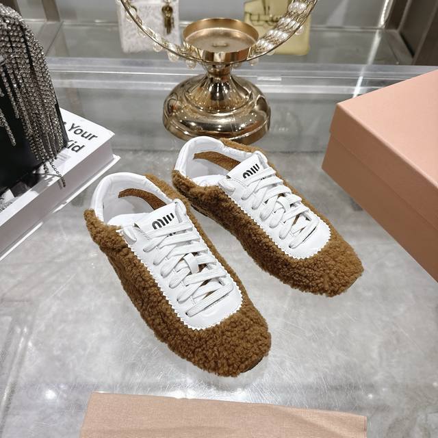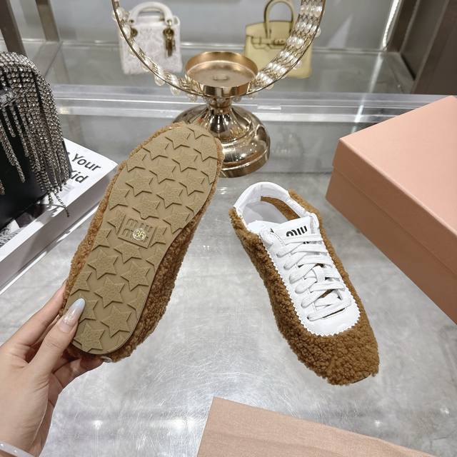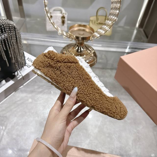 / 出厂 Miumi的最新一季新款休闲羊毛休闲鞋鞋非常适合现在秋冬新宠简约的隔板设计极具辨识度的鞋舌 上脚超级阳光青春暖暖冬日 毛茸茸 可爱 百搭休闲鞋 上脚气场十