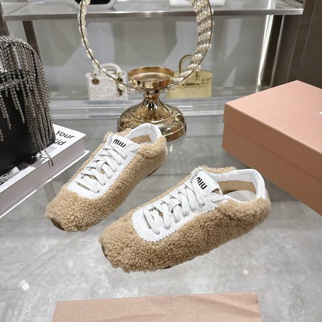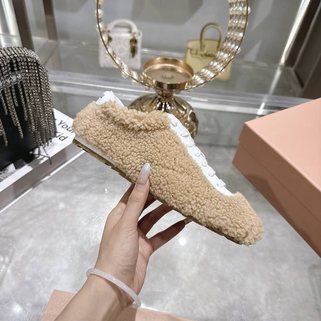 / 出厂 Miumi的最新一季新款休闲羊毛休闲鞋鞋非常适合现在秋冬新宠简约的隔板设计极具辨识度的鞋舌 上脚超级阳光青春暖暖冬日 毛茸茸 可爱 百搭休闲鞋 上脚气场十