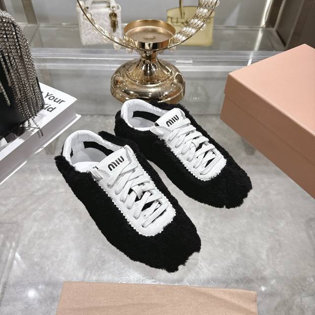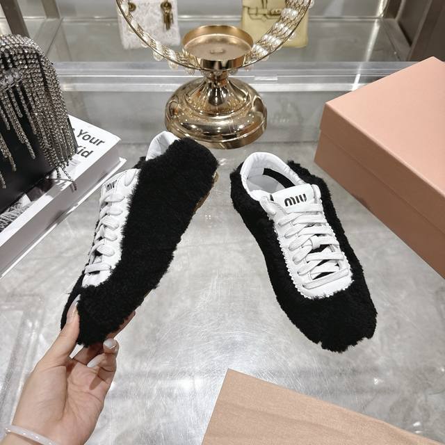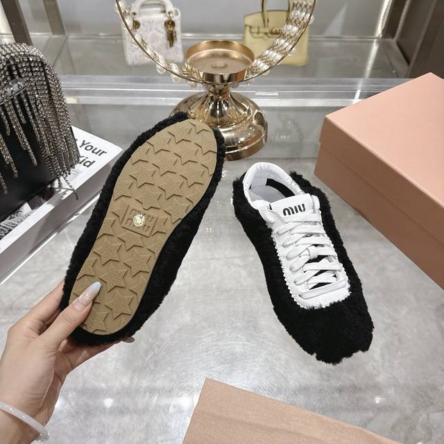 出厂 Miumi的最新一季新款休闲羊毛休闲鞋鞋非常适合现在秋冬新宠简约的隔板设计极具辨识度的鞋舌 上脚超级阳光青春暖暖冬日 毛茸茸 可爱 百搭休闲鞋 上脚气场十足 随意搭配 休闲系列都能穿出与众不同的风格码数34-40