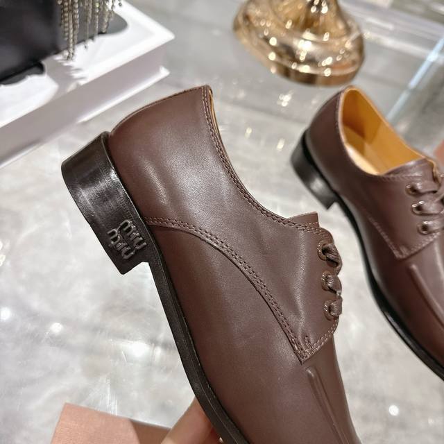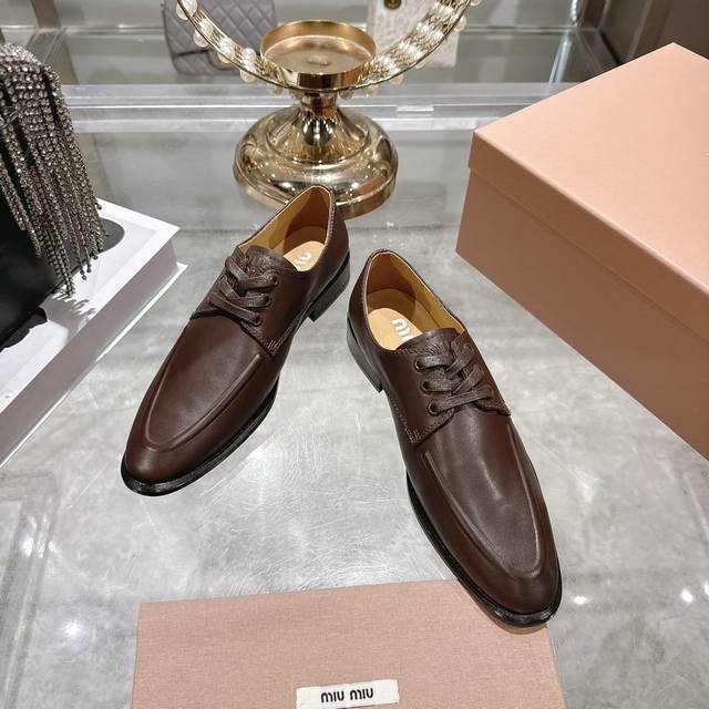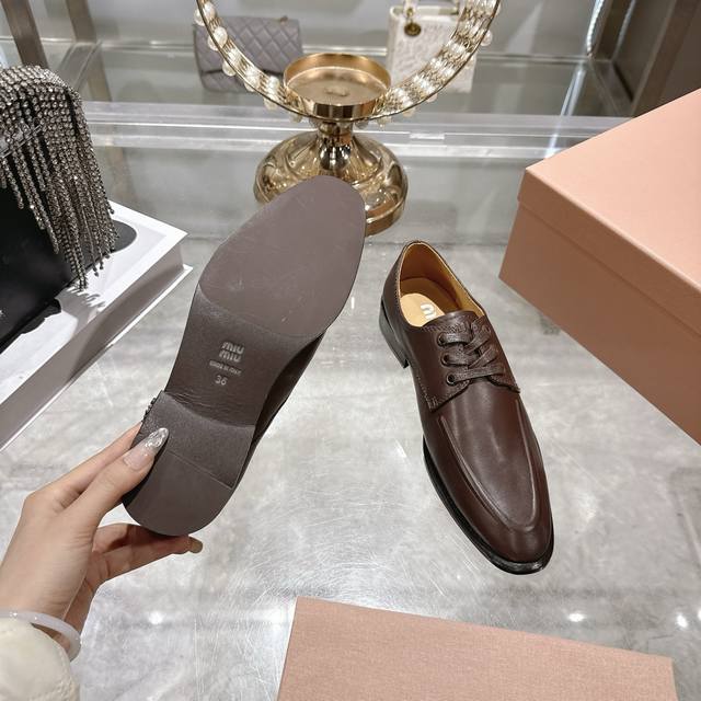 / 出厂 Miumi*26早春新款做旧乐福鞋 以经典复古鞋型为蓝本 质感皮革勾勒流畅线条有点带男性设计概念,又帅又飒 鞋面采用进口擦色牛皮,内里垫脚原版定制羊皮,原