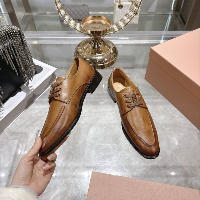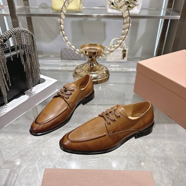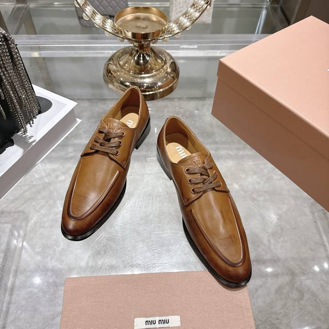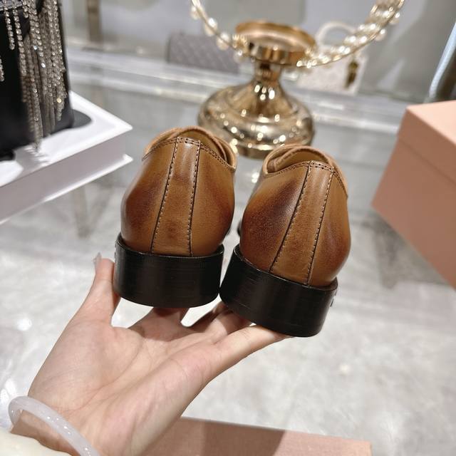 / 出厂 Miumi*26早春新款做旧乐福鞋 以经典复古鞋型为蓝本 质感皮革勾勒流畅线条有点带男性设计概念,又帅又飒 鞋面采用进口擦色牛皮,内里垫脚原版定制羊皮,原