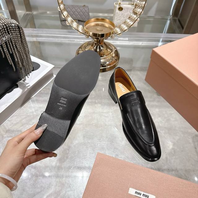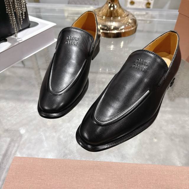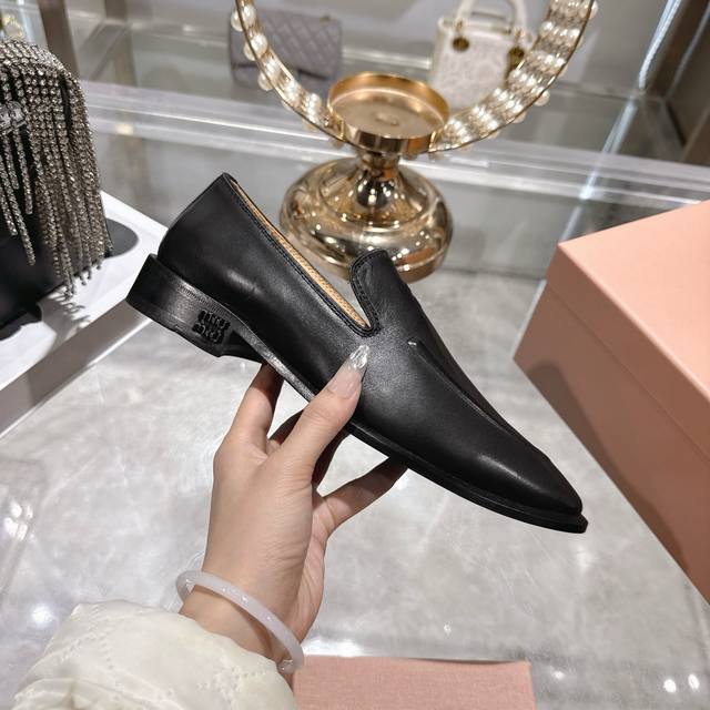 出厂 Miumi*26早春新款做旧乐福鞋 以经典复古鞋型为蓝本 质感皮革勾勒流畅线条有点带男性设计概念,又帅又飒 鞋面采用进口擦色牛皮,内里垫脚原版定制羊皮,原