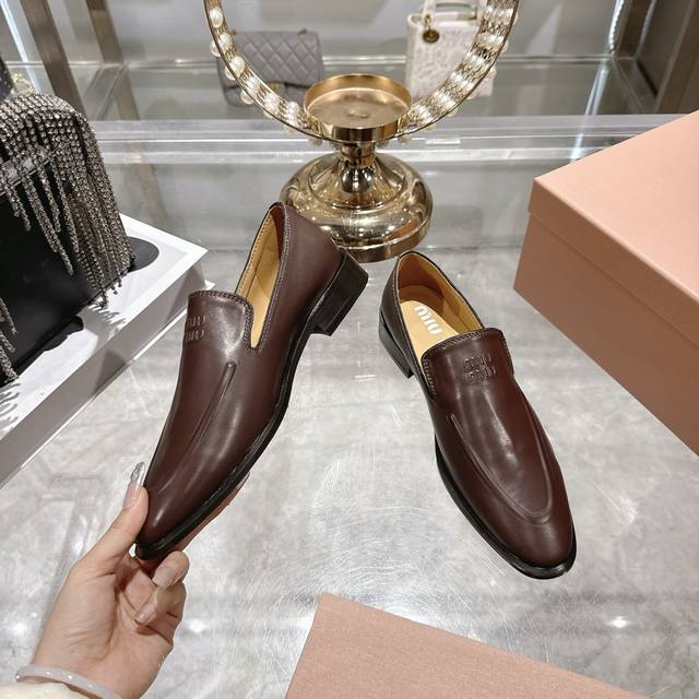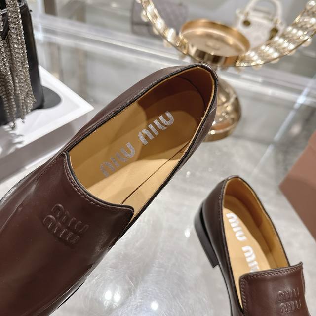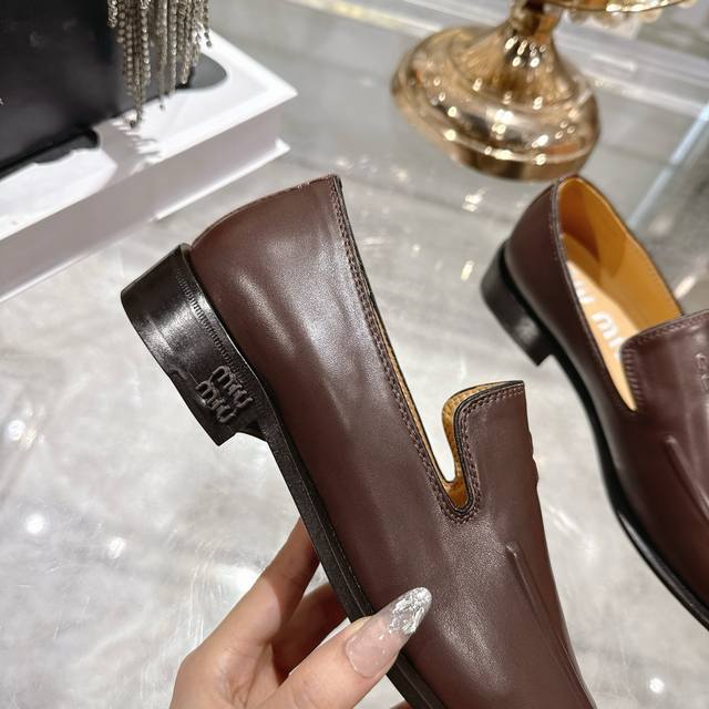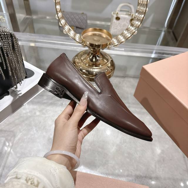 / 出厂 Miumi*26早春新款做旧乐福鞋 以经典复古鞋型为蓝本 质感皮革勾勒流畅线条有点带男性设计概念,又帅又飒 鞋面采用进口擦色牛皮,内里垫脚原版定制羊皮,原