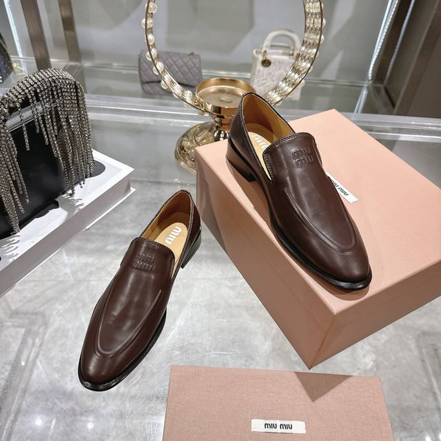 出厂 Miumi*26早春新款做旧乐福鞋 以经典复古鞋型为蓝本 质感皮革勾勒流畅线条有点带男性设计概念,又帅又飒 鞋面采用进口擦色牛皮,内里垫脚原版定制羊皮,原