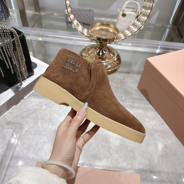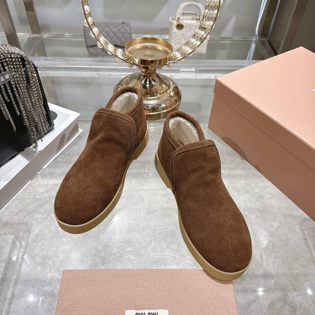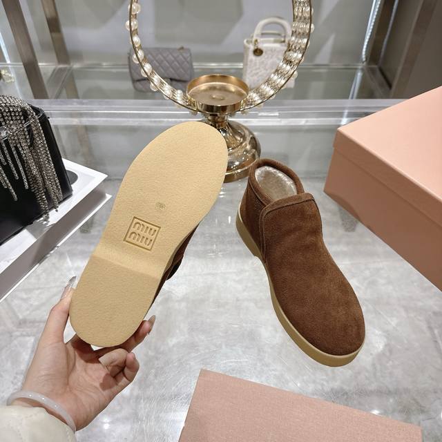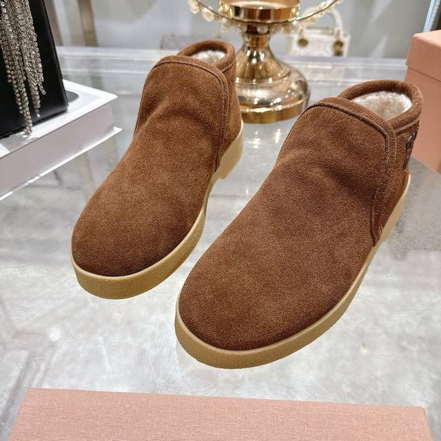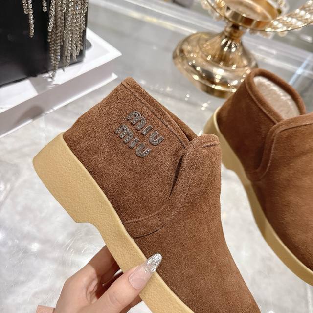 出厂 Miumiu缪缪毛拖鞋2025秋冬新款棉鞋毛毛靴来自Miu Miu系列的细节特写 新季的潮流要素 DDD 面料:进口澳洲加厚加密羊毛 DDD 内里:原版内里 DDD 大底:原版开模鞋底 DDD 码数:35-40 40 41订做不退换 DDD