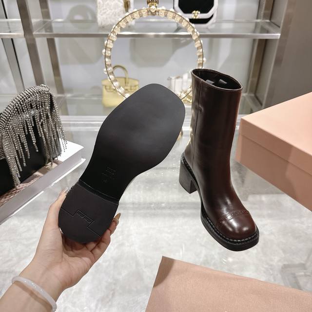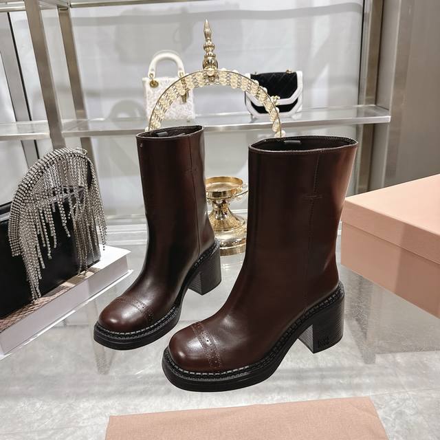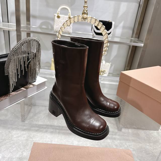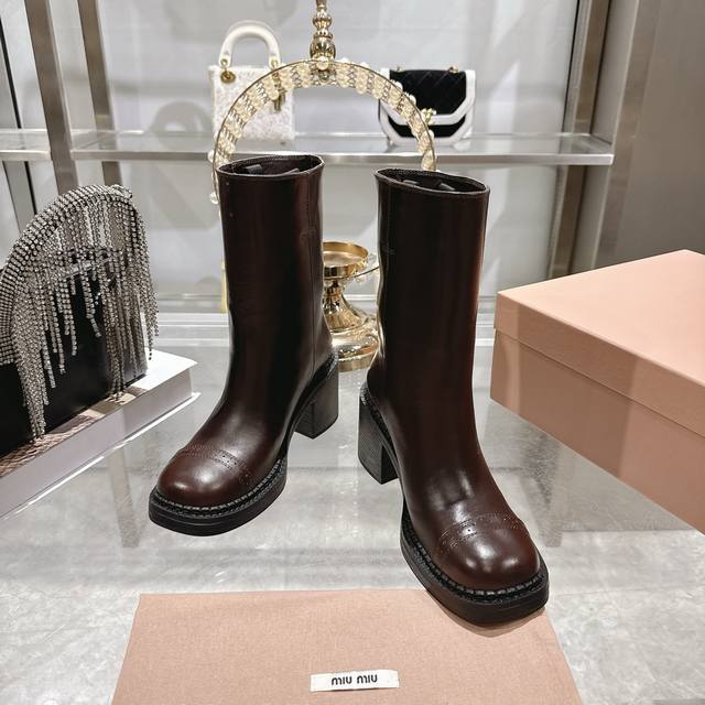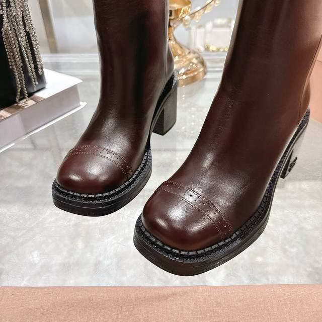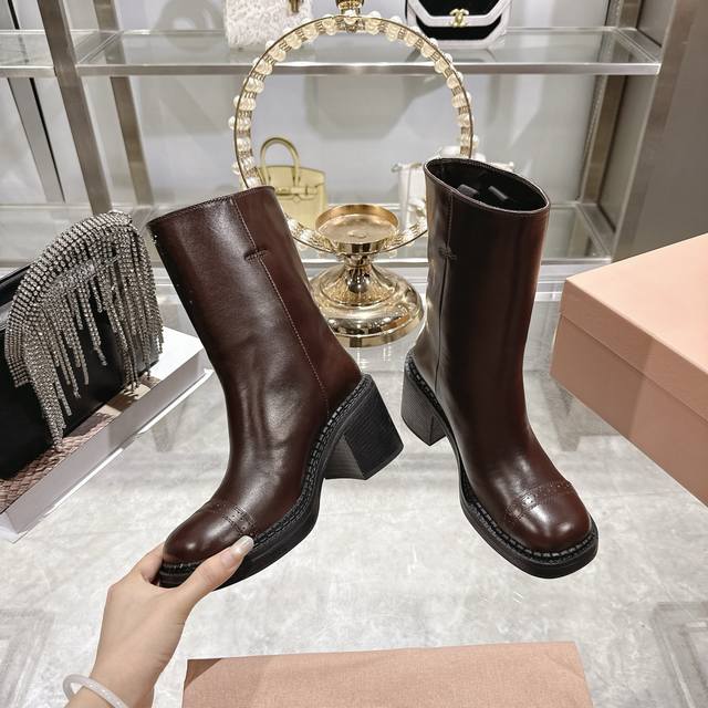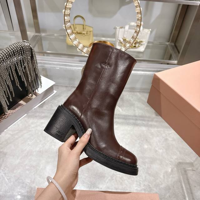 出厂 Miumiu缪缪秋冬最新款复古皮靴 长靴 超多明星时尚博主种草 当下最流行的型体隔板设计 结合美拉德色系皮料 打造中性休闲风格 复古做旧皮料高级感满满 酷
