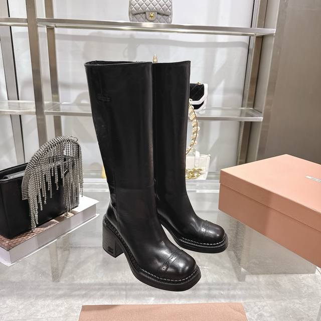 出厂 Miumiu缪缪秋冬最新款复古皮靴 长靴 超多明星时尚博主种草 当下最流行的型体隔板设计 结合美拉德色系皮料 打造中性休闲风格 复古做旧皮料高级感满满 酷