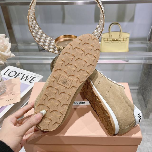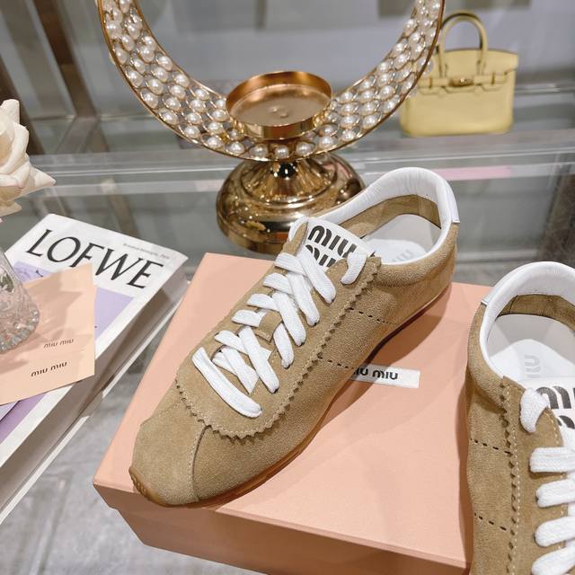 出厂 Miumiu 缪缪25秋冬新款 脏脏小白鞋 上脚特别舒适 透气 简单复古时尚 进口细腻牛绒材质 羊皮内里 橡胶大底 软软的 各位姐妹赶紧入手 Size:#35-41 40 定做不退换