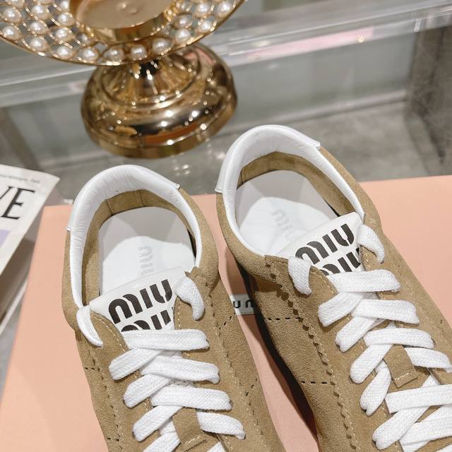 出厂 Miumiu 缪缪25秋冬新款 脏脏小白鞋 上脚特别舒适 透气 简单复古时尚 进口细腻牛绒材质 羊皮内里 橡胶大底 软软的 各位姐妹赶紧入手 Size:#