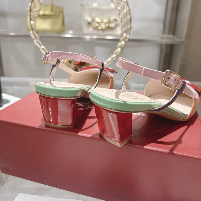 FFF 出厂 Roger Viv*Er 26早春新款中空凉鞋新色升级对于Rv家凉鞋大家爱不释手 .夏天到了新出同系列的凉鞋 满足大家需求一贯 唯美动人 中底全皮拼色鞋面 点缀品牌标志性镀漆饰扣 优雅魅惑 轻松呈现夏日浪漫风情 原版定制花布 意大利真皮大底 Size 34-39 40定制 跟高4.5Cm DDD