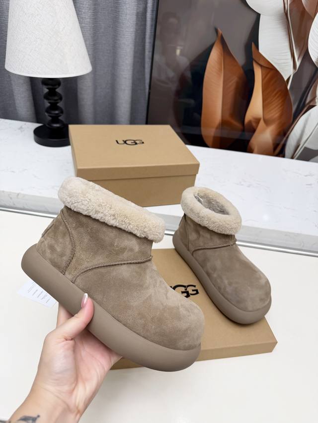 出厂: Ug25最新爆款厚底小土豆羊毛靴真的是必须人手一双!慵懒随性的代表,穿搭上脚真的很高级 上脚包裹感超Nice,很舒服,懒人必备A级牛反绒面料100%纯羊