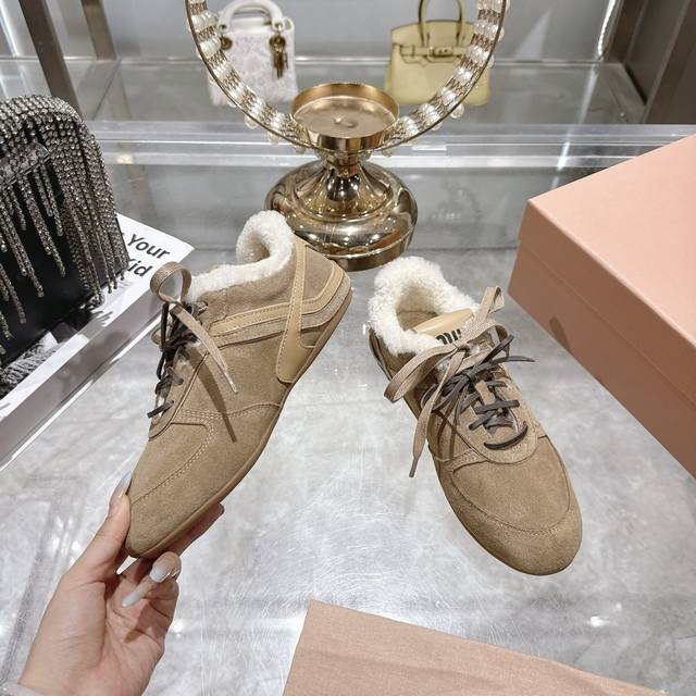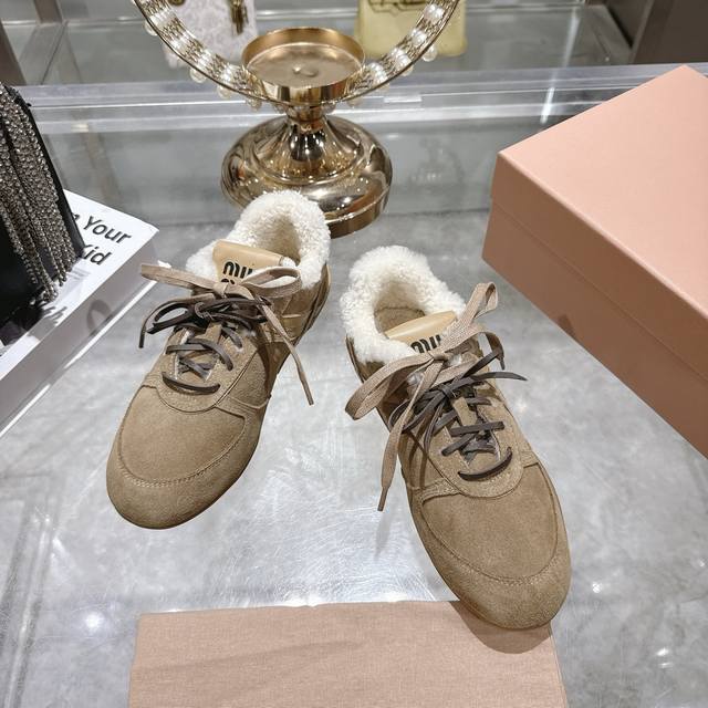 出厂380Miu Miu 缪缪 25Ss秋冬走秀新款系带德训鞋 休闲 运动鞋 这款系带休闲运动鞋~日常穿着必选 上脚超级好看舒适 经典百搭的绝绝子单品 面料进口订制反绒皮 内里进口羊毛 原版开模橡胶大底 码数:35-39 40定做