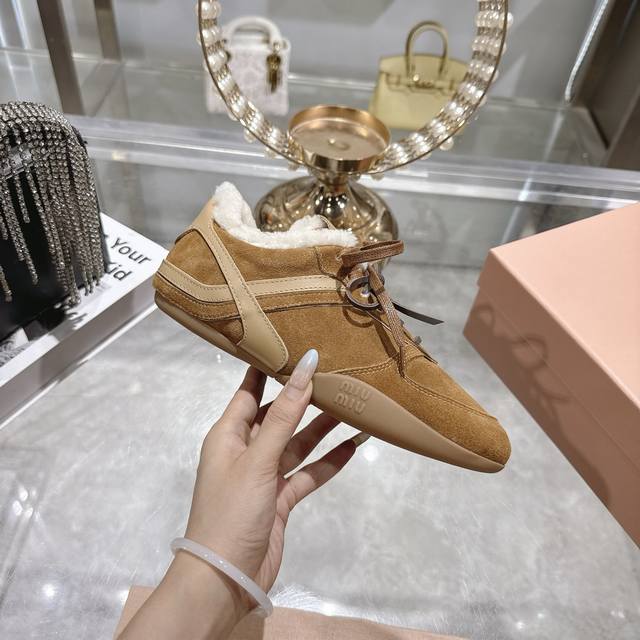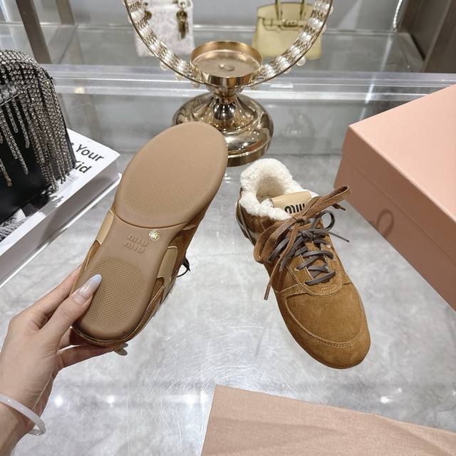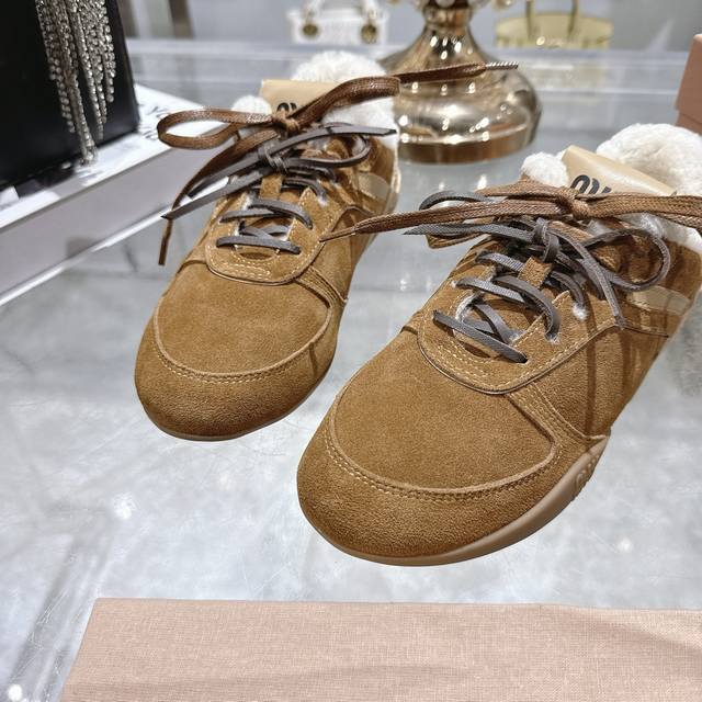 出厂380Miu Miu 缪缪 25Ss秋冬走秀新款系带德训鞋 休闲 运动鞋 这款系带休闲运动鞋~日常穿着必选 上脚超级好看舒适 经典百搭的绝绝子单品 面料进口订制反绒皮 内里进口羊毛 原版开模橡胶大底 码数:35-39 40定做
