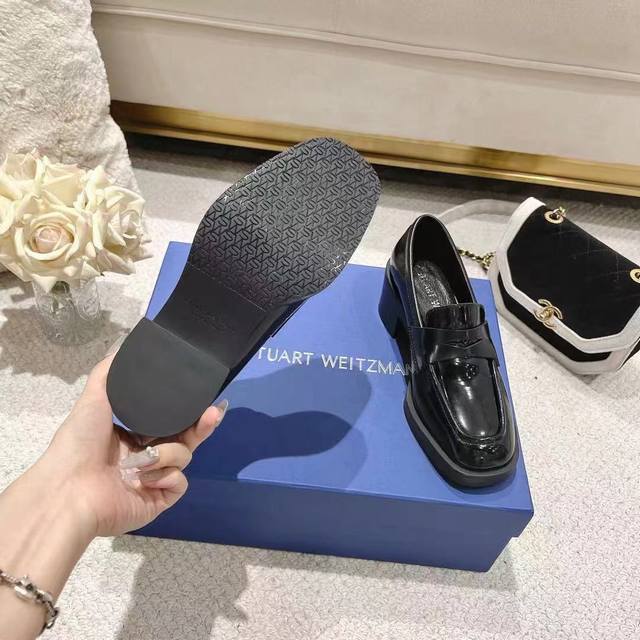 出 Sw 早春新款厚底单鞋 乐福鞋 经典奢华漆皮工艺 为日常平底鞋注入时髦前卫的不羁个性,使鞋子兼具实穿性与潮流感 简约流畅线条搭配微微收窄的杏仁圆头鞋头,穿上以后特别修饰脚型,显得双脚秀气纤长的同时,完全不会挤压足尖 以质感轻盈的橡胶底予整体的实用性及弹性,无需磨合期适应期性强,走路不累脚 增高显瘦百搭 面料:开边珠 跟高5厘米 码数34-40