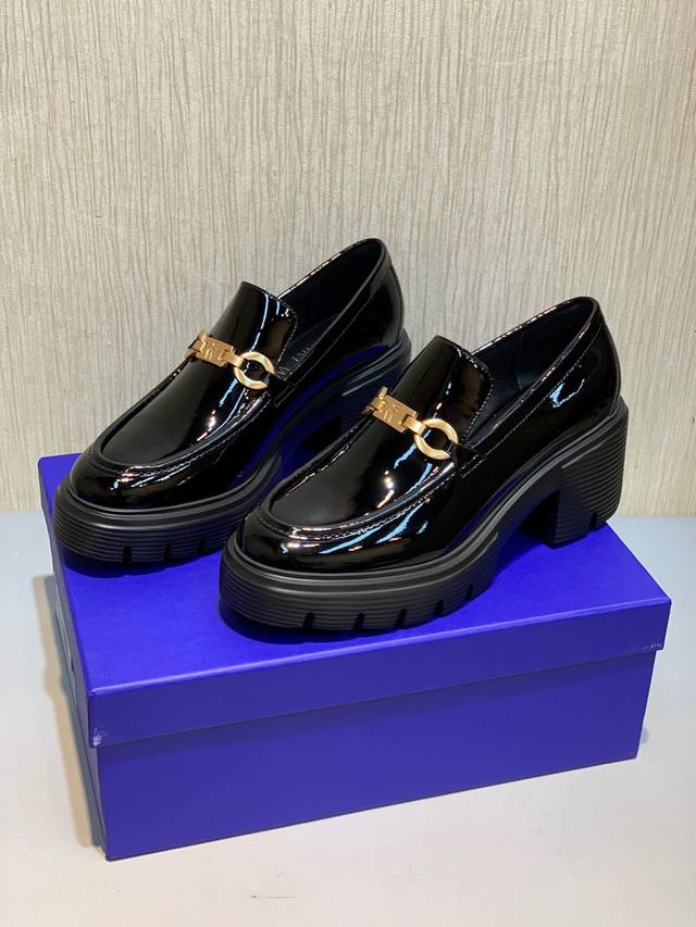 出 Sw 2025 早春新款厚底单鞋 乐福鞋 经典奢华漆皮工艺 为日常平底鞋注入时髦前卫的不羁个性,使鞋子兼具实穿性与潮流感 简约流畅线条搭配微微收窄的杏仁圆头