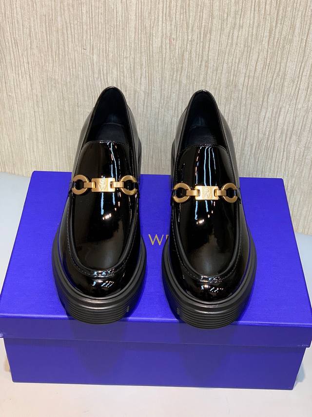 出 Sw 2025 早春新款厚底单鞋 乐福鞋 经典奢华漆皮工艺 为日常平底鞋注入时髦前卫的不羁个性,使鞋子兼具实穿性与潮流感 简约流畅线条搭配微微收窄的杏仁圆头鞋头,穿上以后特别修饰脚型,显得双脚秀气纤长的同时,完全不会挤压足尖 以质感轻盈的橡胶底予整体的实用性及弹性,无需磨合期适应期性强,走路不累脚 增高显瘦百搭 面料:镜面牛软漆皮Eva发泡磨具大底超轻 跟高6厘米 码数34-40