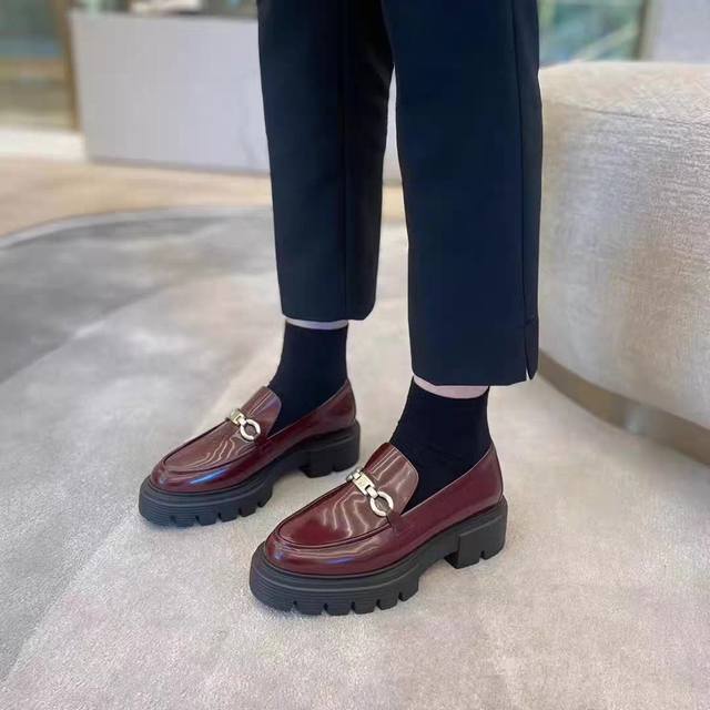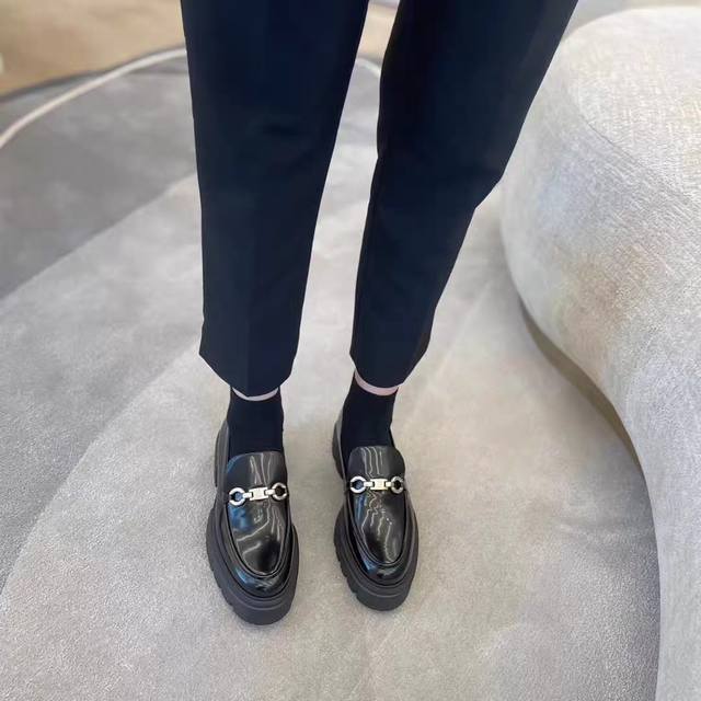 / 单鞋出货了,, 早春新款厚底单鞋 乐福鞋 经典奢华漆皮工艺 为日常平底鞋注入时髦前卫的不羁个性,使鞋子兼具实穿性与潮流感 简约流畅线条搭配微微收窄的杏仁圆头鞋头