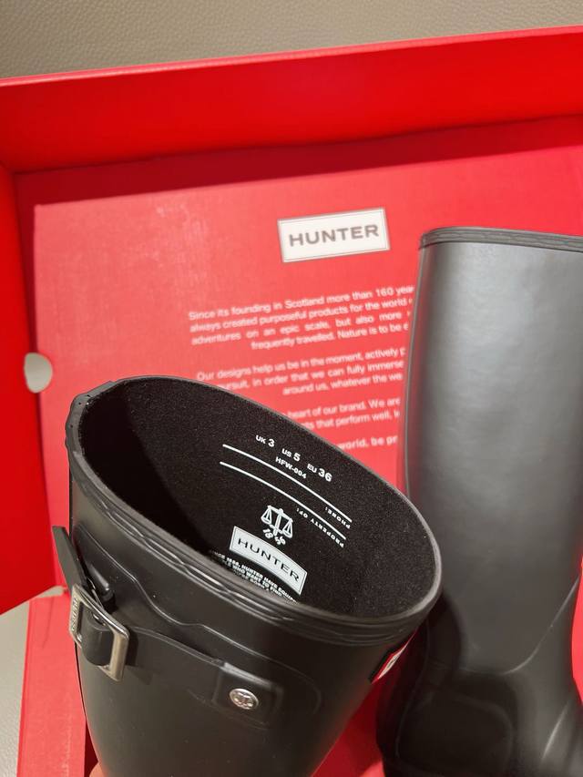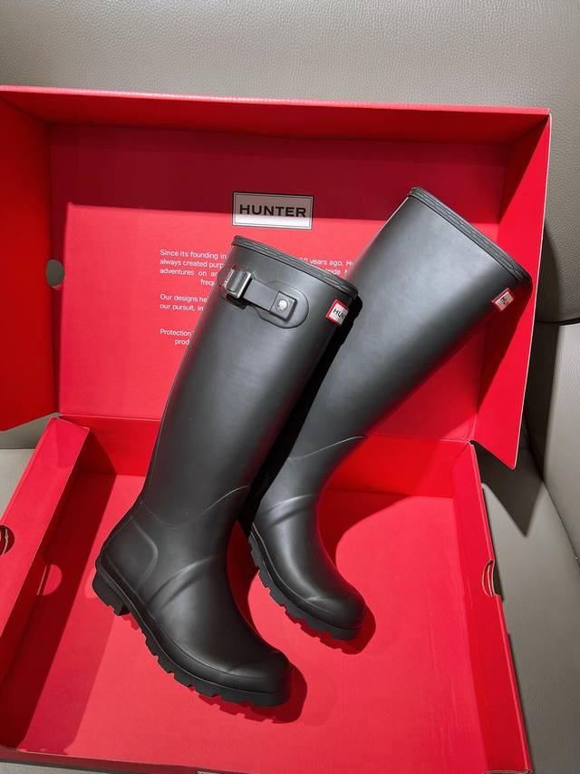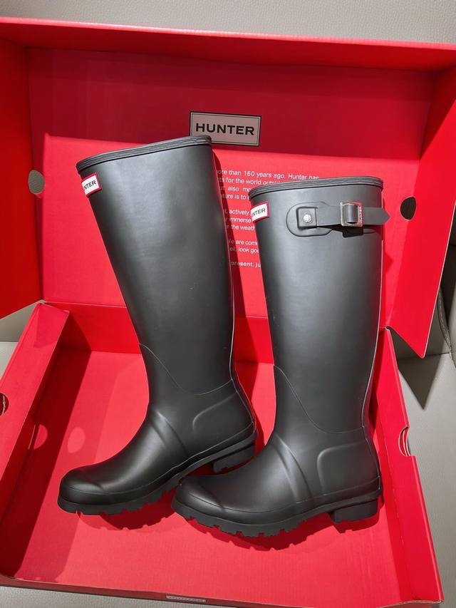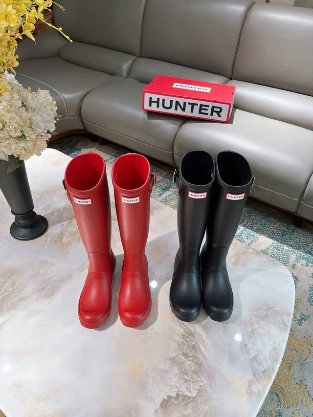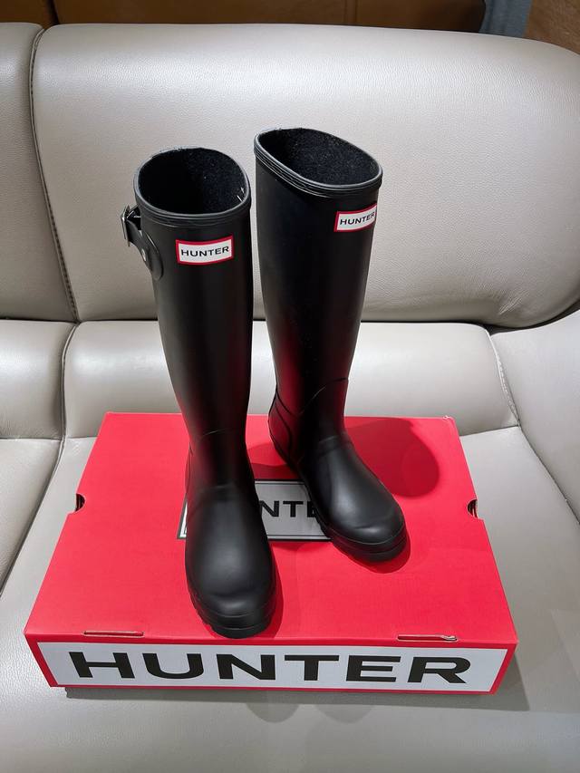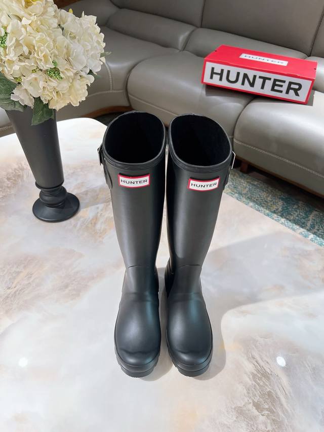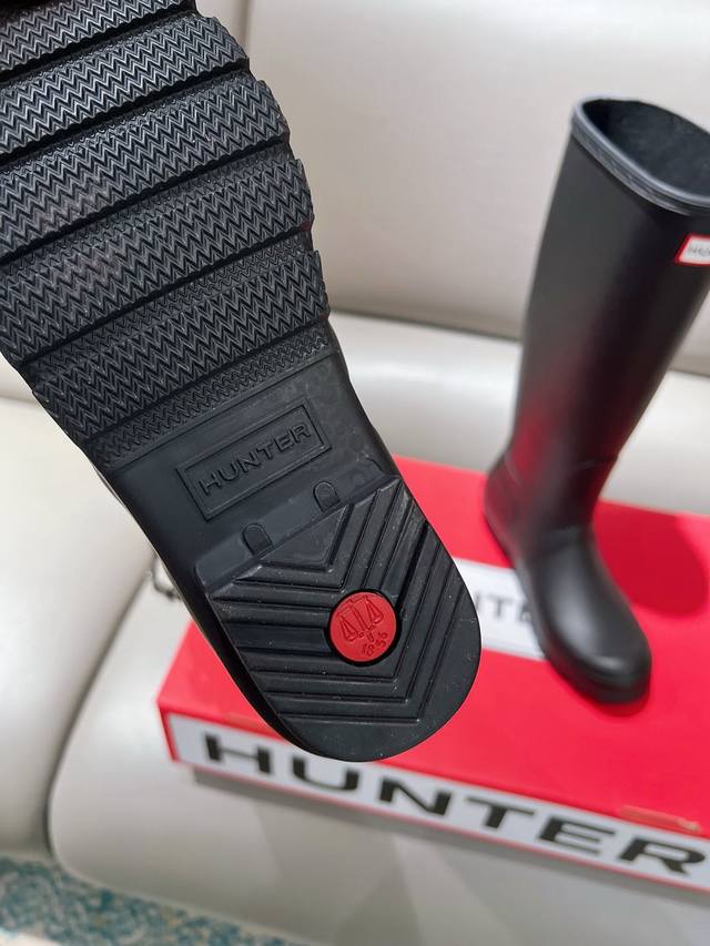 博柏利原单代工厂P生产,渠道货 元,Hunter 春夏新款通勤高筒长雨靴 Ins潮品亮光惠灵顿时尚女靴 始于1856年 英国皇室御用品牌 让你雨天也可酷酷出行 经典的英伦设计能够更好的修饰你的腿型使其线条更加完美利落 属于甜酷猎人靴风格大风大雨天穿着真心实用又好看 建议搭配袜子或小脚