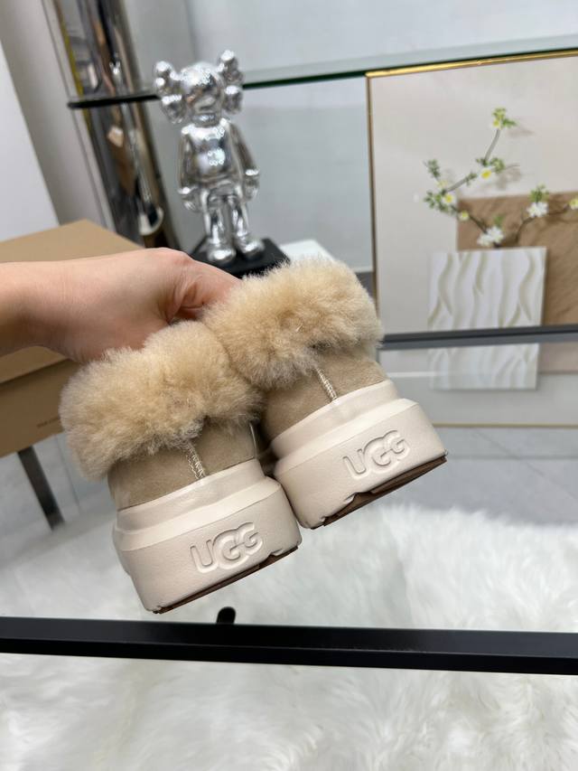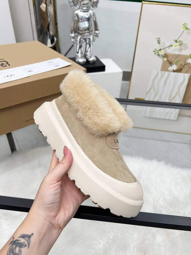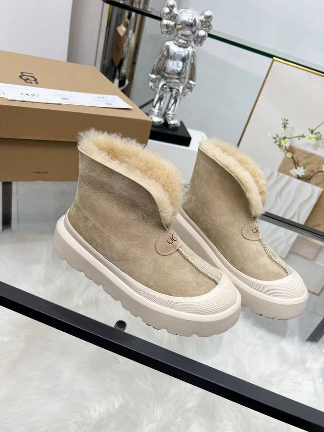 / 卡2色皮毛一体麂皮质感高级,美式复古氛围感被这双雪地靴拿捏住啦~ 毛绒边软乎乎超治愈,厚底还能悄悄增高。搭配大衣、毛衣都很绝,踩上去像踩在云朵上,温暖又显腿细,