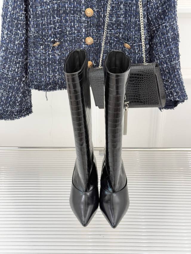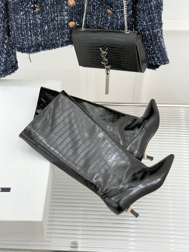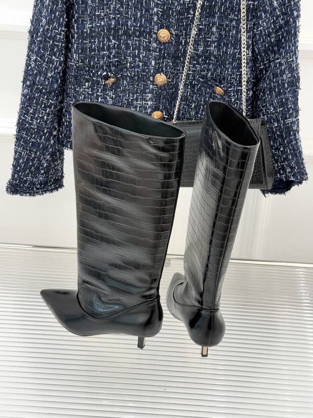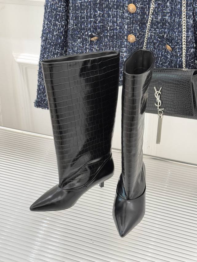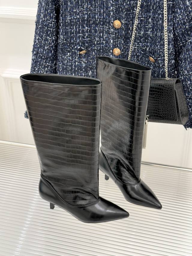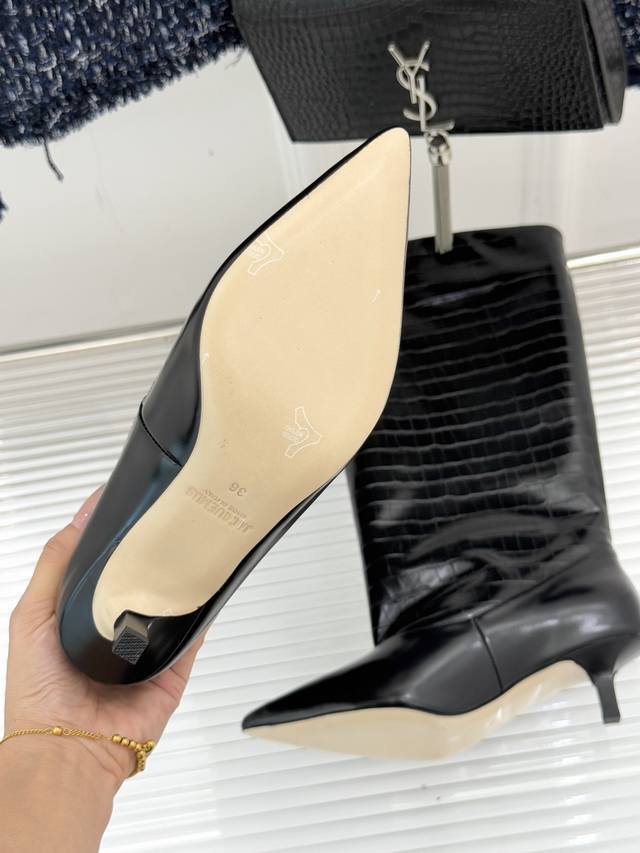 厂价 Jacques 25Wf新品尖头猫跟长靴 极简主义设计风格又复古 标志性尖头剪裁纵向延伸脚型 从脚踝到小腿勾勒流畅轮廓 让粗腿或宽脚也能拥有纤细视觉感。 重心稳落间消解高跟负担 久站行走亦能保持从容姿态。 4.5Cm稳固猫跟消解了长靴的厚重感 既能搭配西装烟管裤撑起职场气场 也能适配短裙演绎甜酷风情 更可与大衣同框定格复古摩登画面。 视觉上瞬间优化比例 小个子也能穿出修长气场 无冗余装饰的极简设计 恰是 老钱风 低调品味的注脚。 面料采用原版定制牛皮 内里踮脚均为羊皮 原版开模定制防滑大底 Size