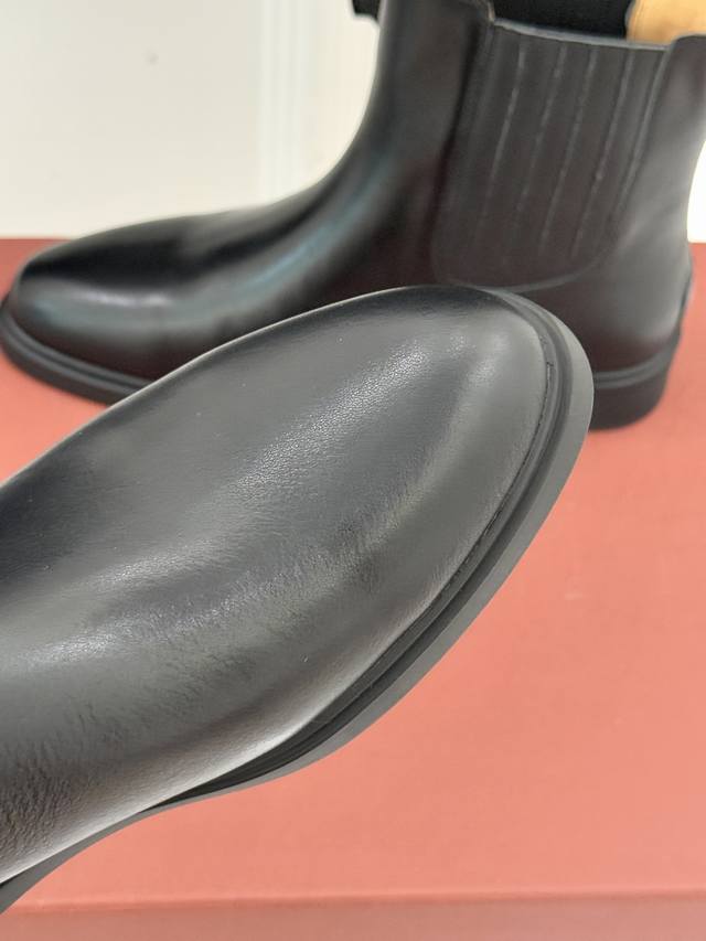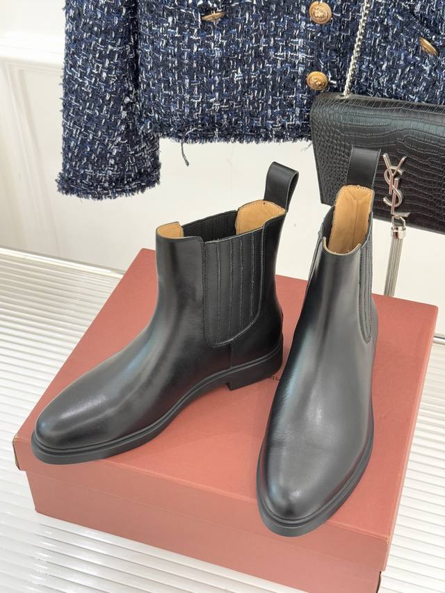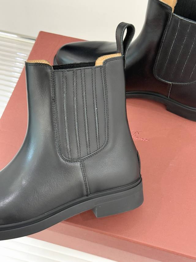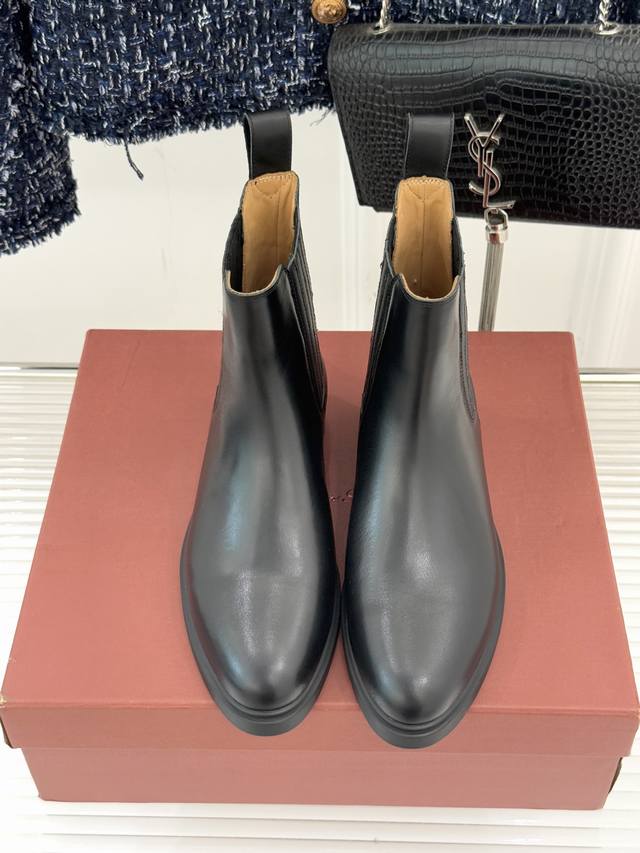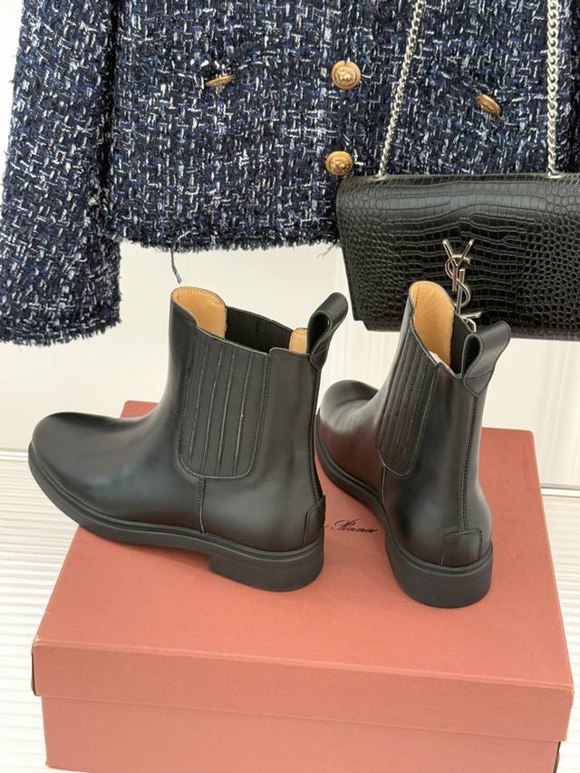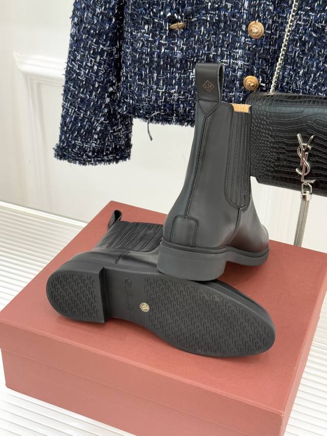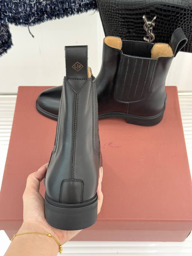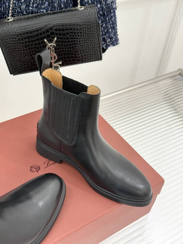 厂价 Loro Piana Lp60Wf秋冬新品复古 极简切尔西短靴 这款短靴以“隐奢美学”重塑日常格调 让每一步都成为低调品味的无声注解。 鞋型延续切尔西靴的隽永廓形, 利落线条去除冗余装饰, 仅以细腻弹性侧边嵌片呼应经典设计语言 圆鞋头与贴合脚踝的靴筒剪裁, 兼顾舒适与显瘦效果 纵向延伸腿部线条 鞋面甄选经天然蜡处理的精致牛皮革 经手工润饰呈现温润光泽与自然纹理 或是采用滚筒处理的Rugged Calf皮革 触感柔软且带着岁月沉淀的质感 意大利工艺打造的轻量化橡胶鞋底 以3厘米左右的厚度平衡支撑性与舒