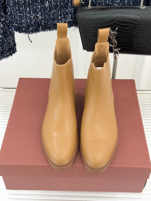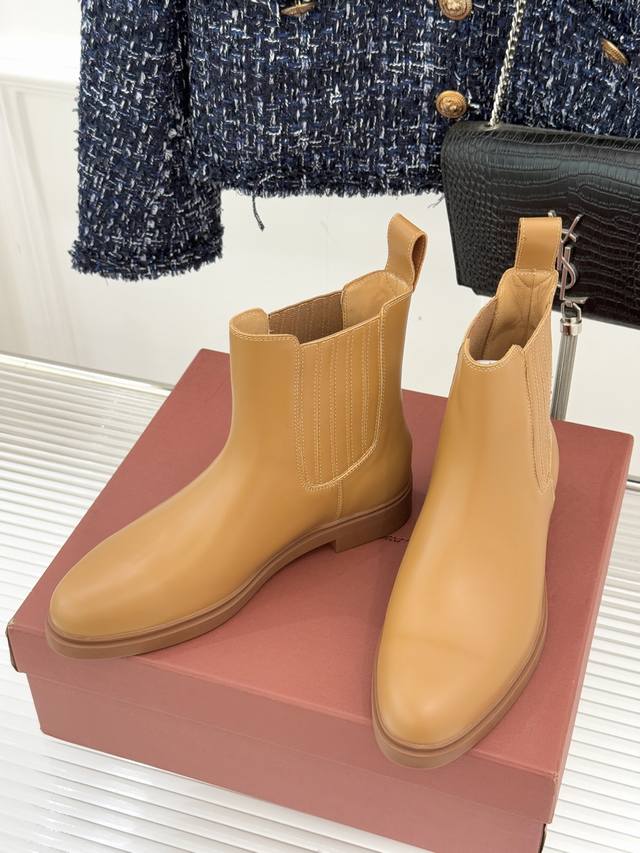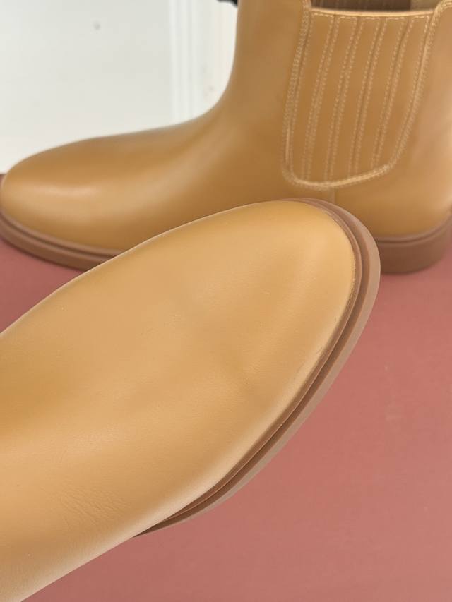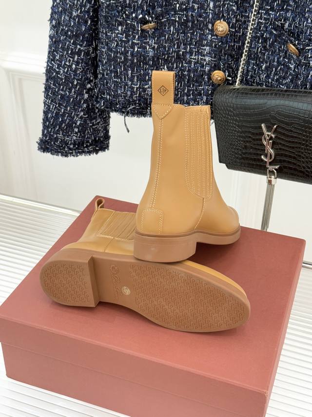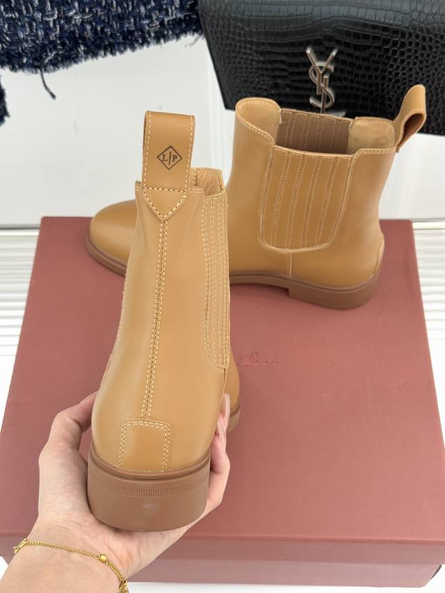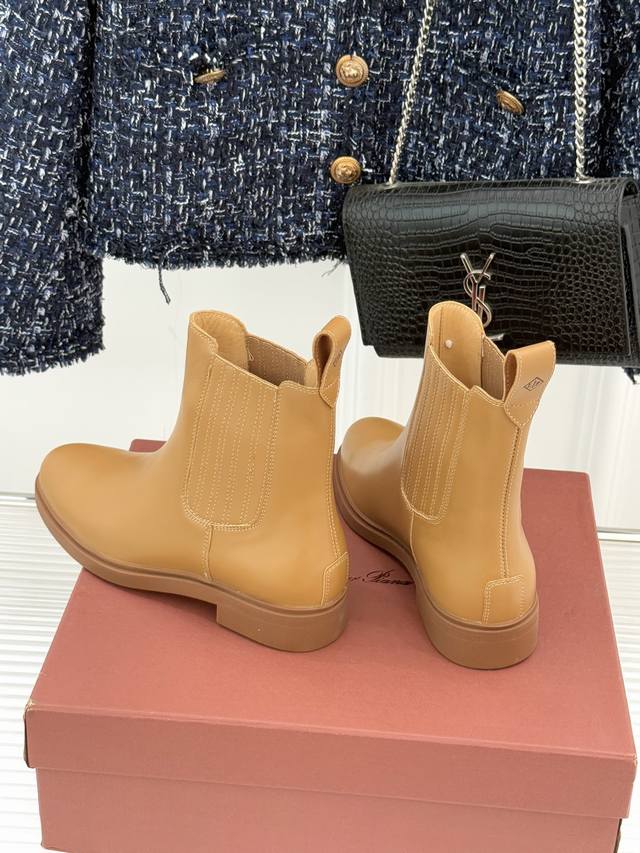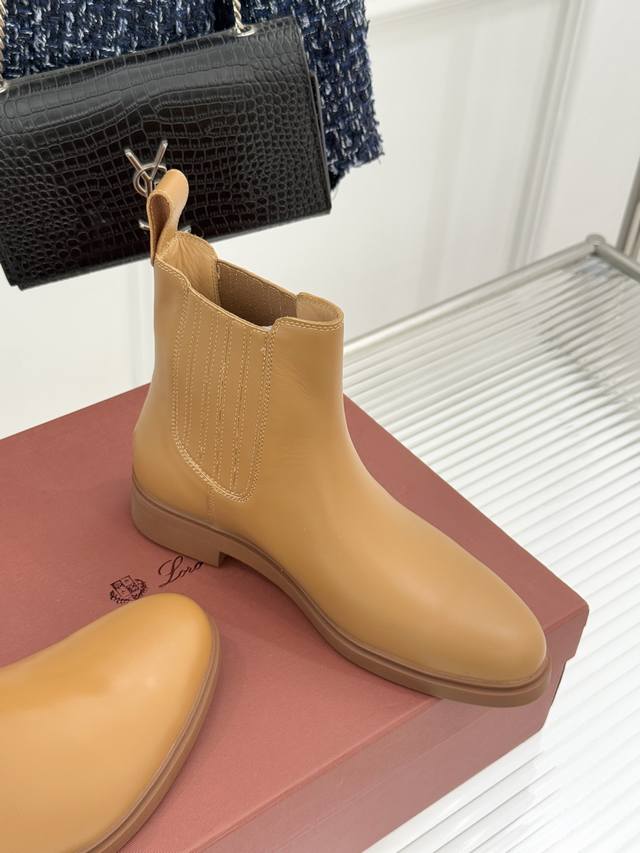 厂价 Loro Piana Lp60Wf秋冬新品复古 极简切尔西短靴 这款短靴以“隐奢美学”重塑日常格调 让每一步都成为低调品味的无声注解。 鞋型延续切尔西靴的隽永廓形, 利落线条去除冗余装饰, 仅以细腻弹性侧边嵌片呼应经典设计语言 圆鞋头与贴合脚踝的靴筒剪裁, 兼顾舒适与显瘦效果 纵向延伸腿部线条 鞋面甄选经天然蜡处理的精致牛皮革 经手工润饰呈现温润光泽与自然纹理 或是采用滚筒处理的Rugged Calf皮革 触感柔软且带着岁月沉淀的质感 意大利工艺打造的轻量化橡胶鞋底 以3厘米左右的厚度平衡支撑性与舒
