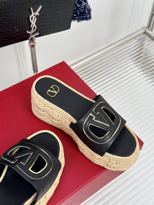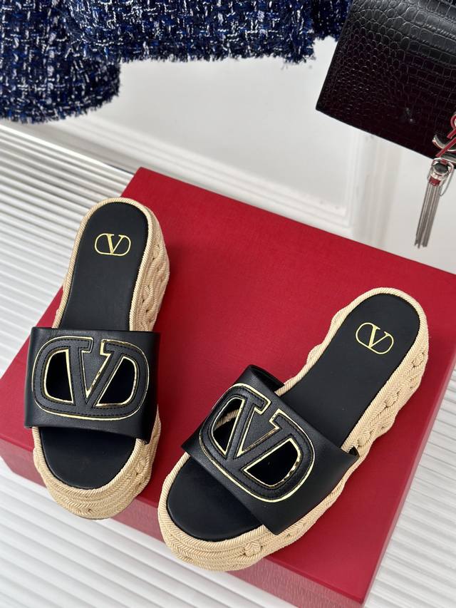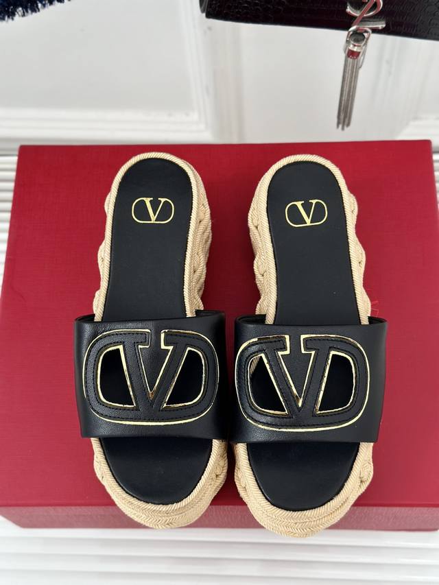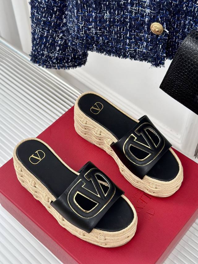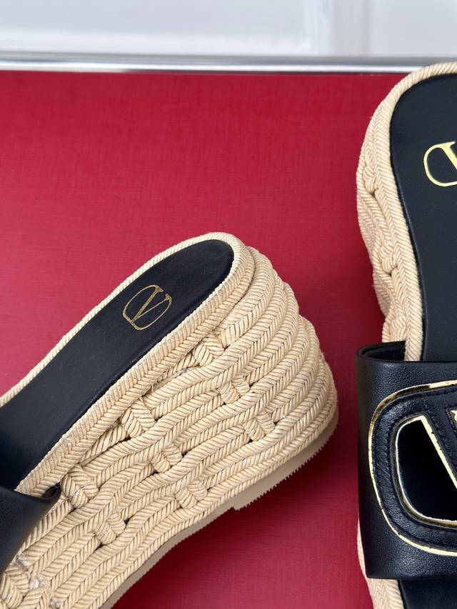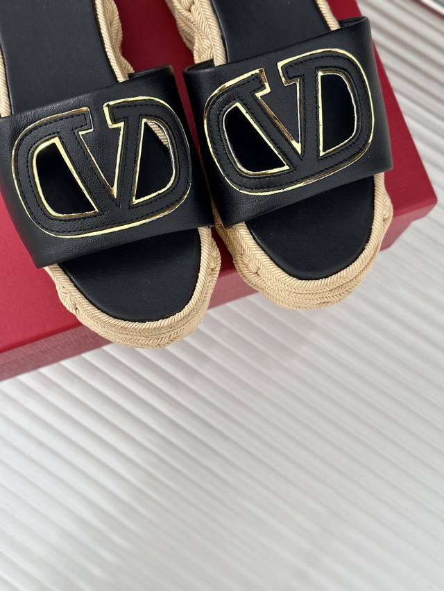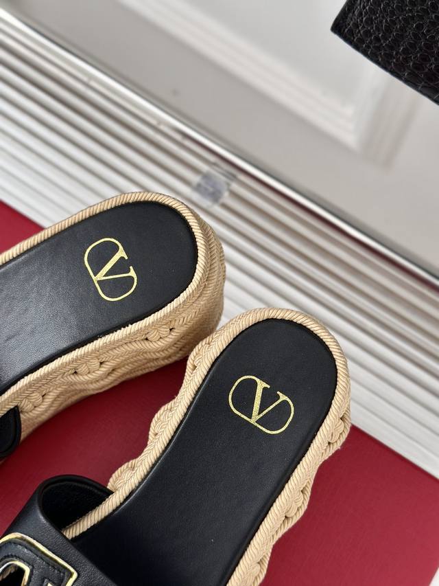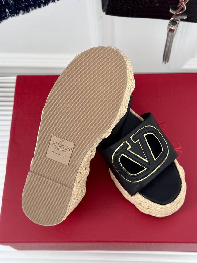 厂价 Valentin|华伦天伦24S春夏 新品大V扣厚底拖鞋 经典的大V扣元素设计 彰显了品牌独有的风格 奢华时尚 极有辨识度 厚底在拉长腿方面真的Yyds百搭舒适 上脚秒变大长腿!鞋面采用进口小牛皮 内里踮脚混种羊皮 原版开模五金扣 原版开模麻绳 橡胶大底 码数:35-39 40 41定制