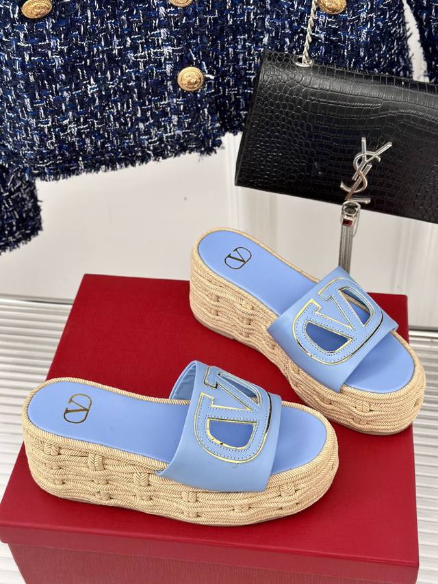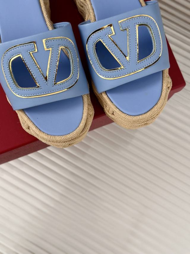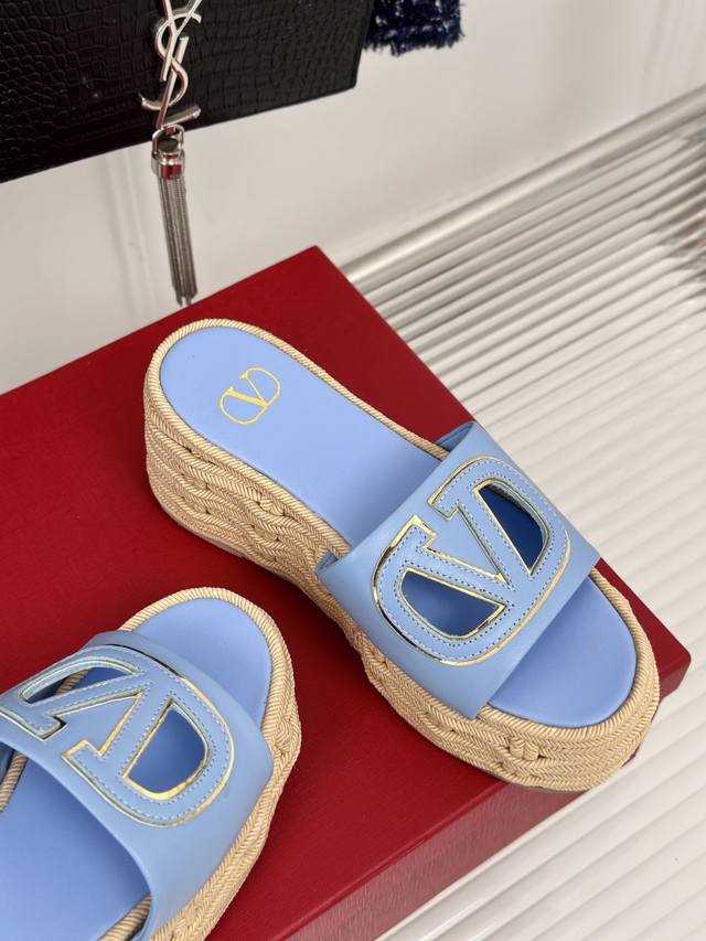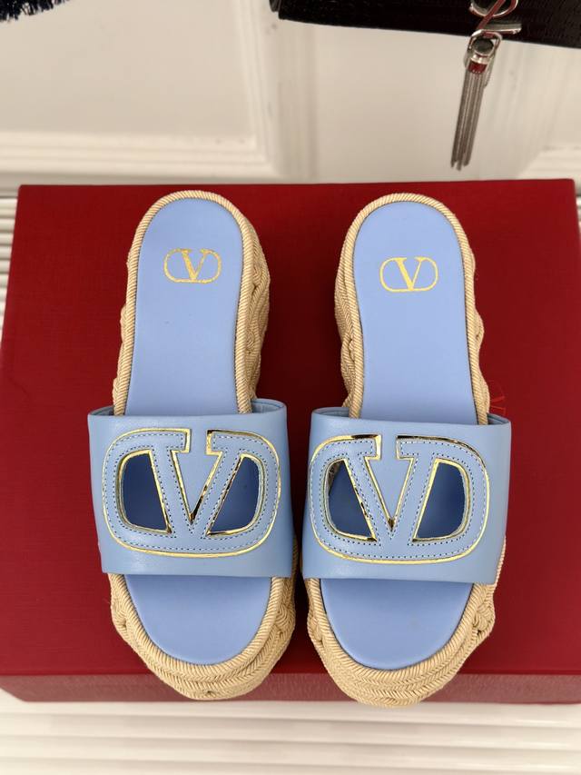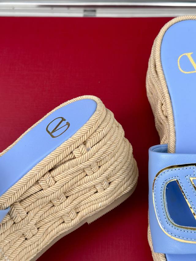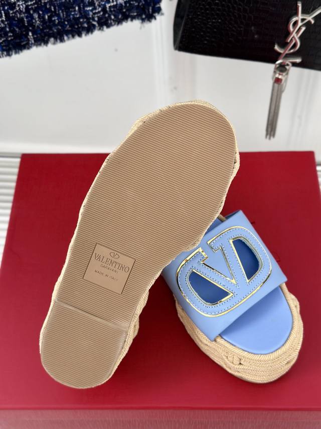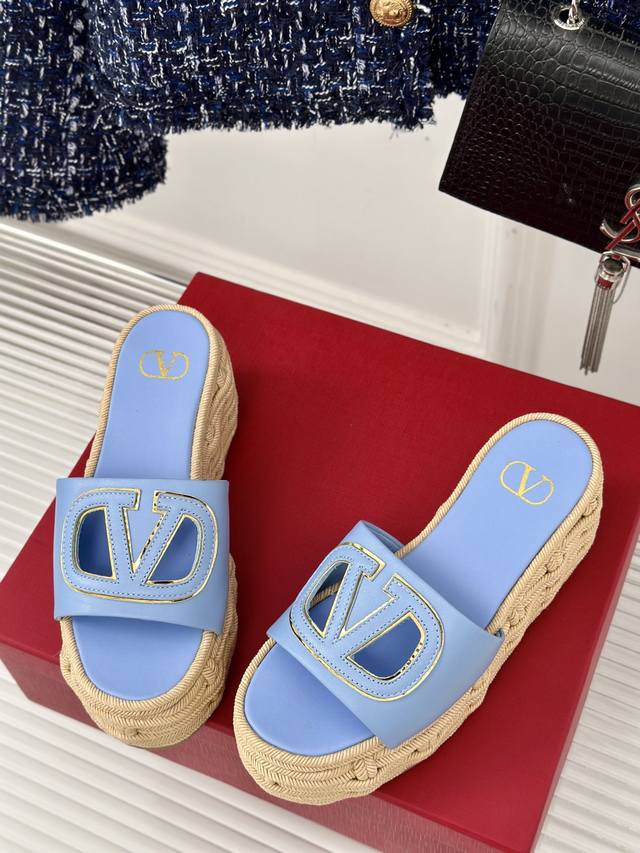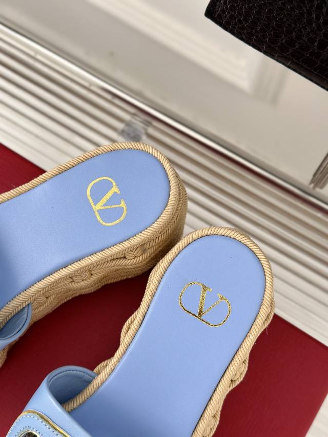 厂价 Valentin|华伦天伦24S春夏 新品大V扣厚底拖鞋 经典的大V扣元素设计 彰显了品牌独有的风格 奢华时尚 极有辨识度 厚底在拉长腿方面真的Yyds百搭舒适 上脚秒变大长腿!鞋面采用进口小牛皮 内里踮脚混种羊皮 原版开模五金扣 原版开模麻绳 橡胶大底 码数:35-39 40 41定制
