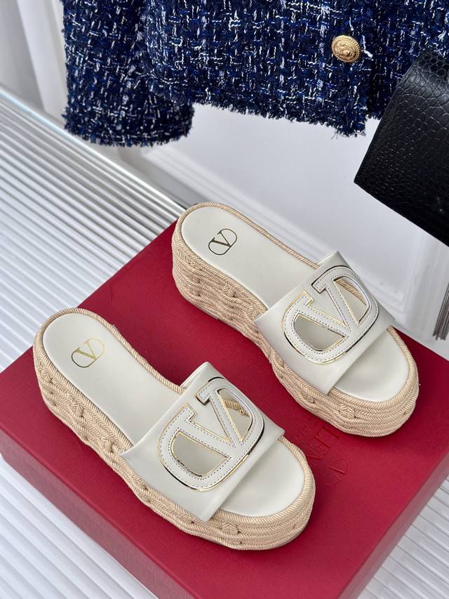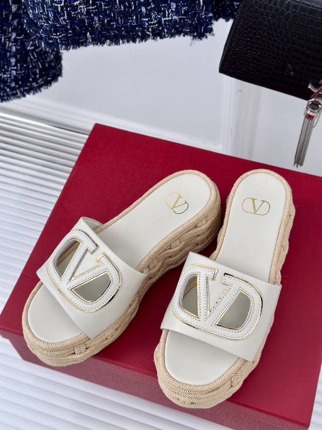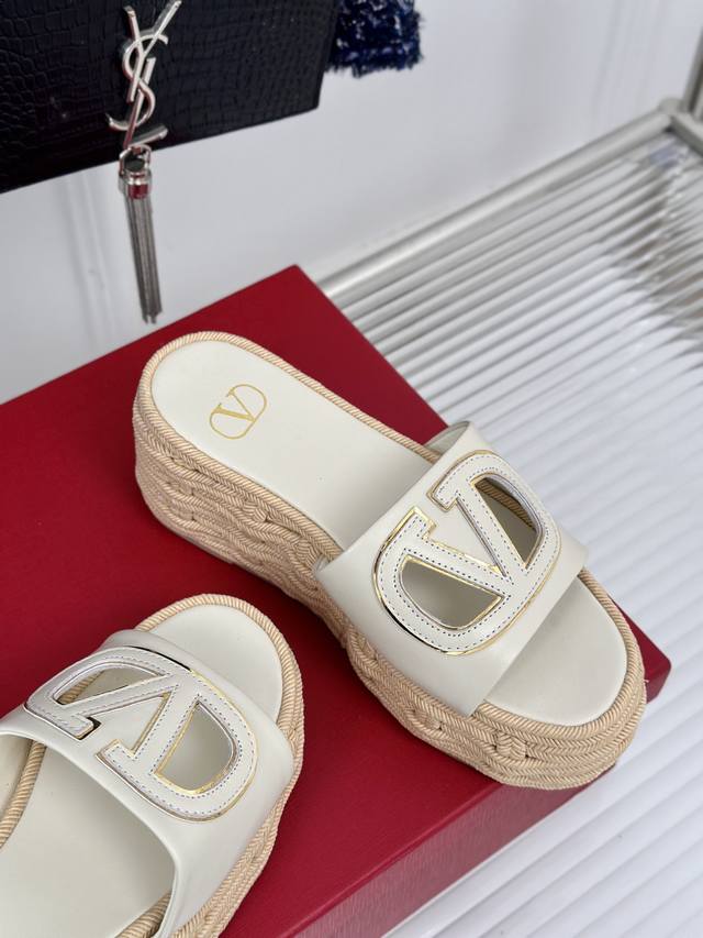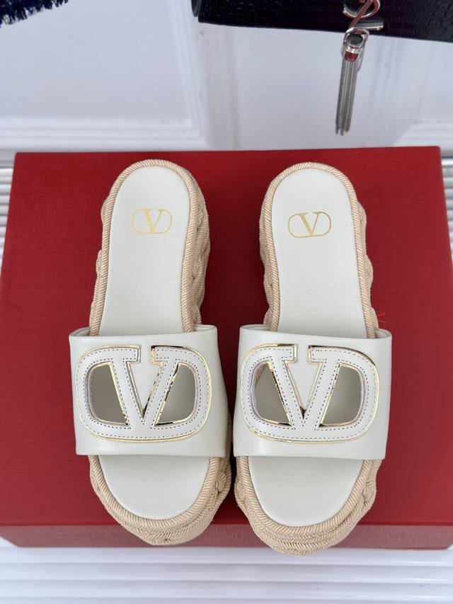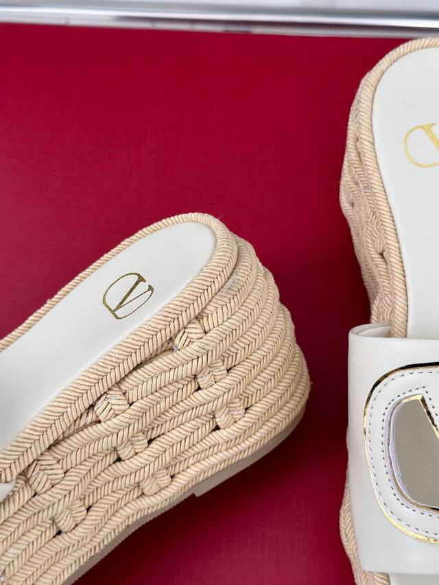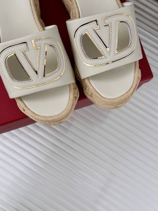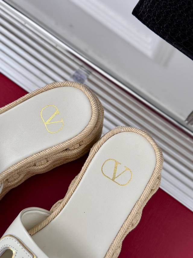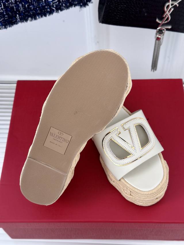 厂价 Valentin|华伦天伦24S春夏 新品大V扣厚底拖鞋 经典的大V扣元素设计 彰显了品牌独有的风格 奢华时尚 极有辨识度 厚底在拉长腿方面真的Yyds百搭舒适 上脚秒变大长腿!鞋面采用进口小牛皮 内里踮脚混种羊皮 原版开模五金扣 原版开模麻绳 橡胶大底 码数:35-39 40 41定制