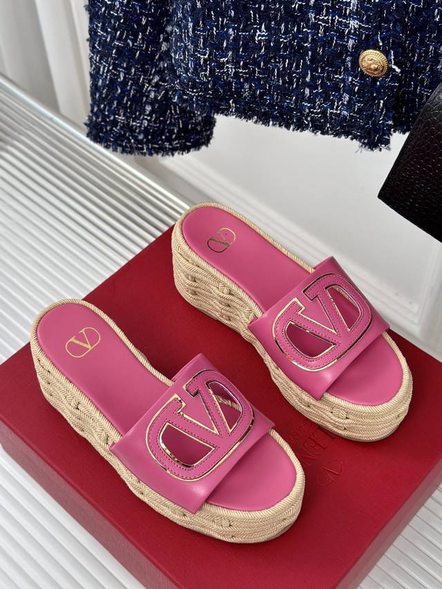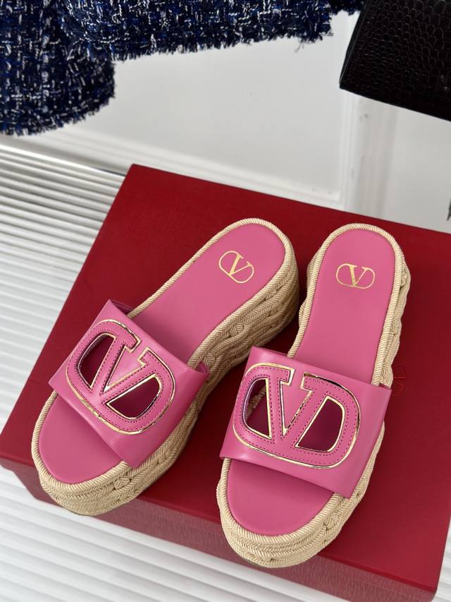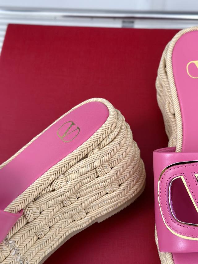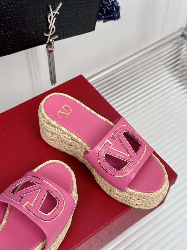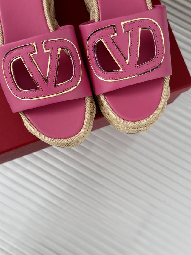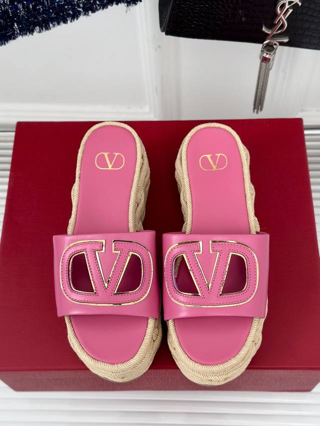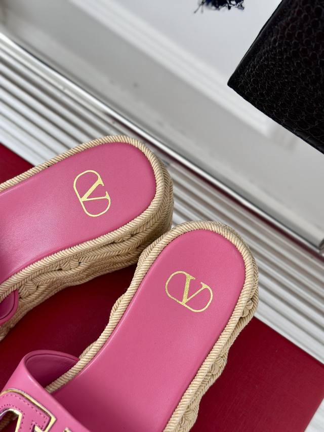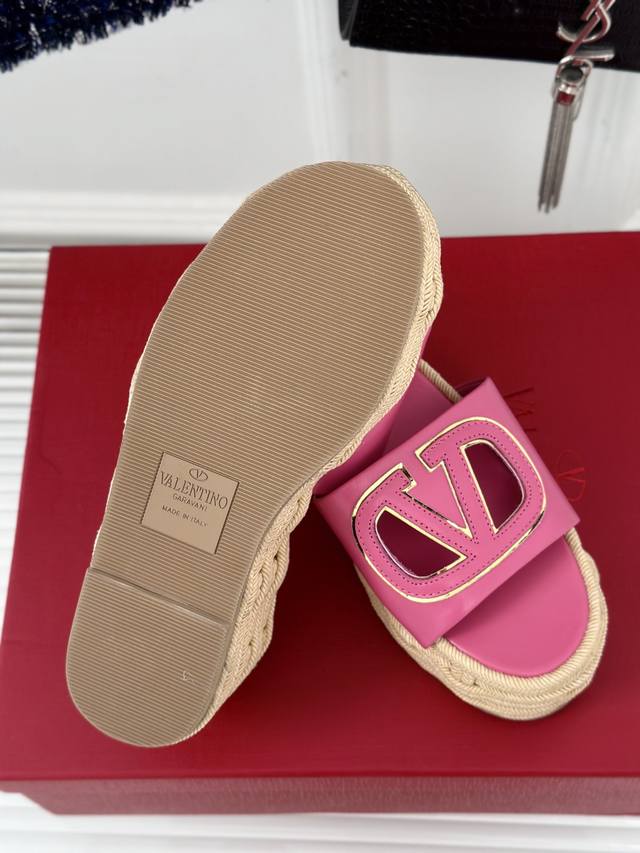 厂价 Valentin|华伦天伦24S春夏 新品大V扣厚底拖鞋 经典的大V扣元素设计 彰显了品牌独有的风格 奢华时尚 极有辨识度 厚底在拉长腿方面真的Yyds百搭舒适 上脚秒变大长腿!鞋面采用进口小牛皮 内里踮脚混种羊皮 原版开模五金扣 原版开模麻绳 橡胶大底 码数:35-39 40 41定制