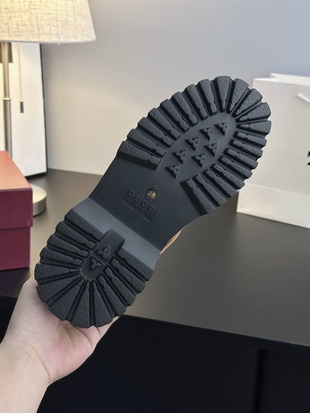 厚底乐福鞋 谁懂啊!这双鞋直接把 经典 和 时髦厚底 焊死了细腻翻毛皮裹着脚,像踩进云端的柔软厚底自带“空气感”,却又挺括有型,走路带风都藏着松弛感~复古滤镜直接拉满! 标志性马衔扣:五金质感, Dna刻进细节,一眼识货的高级! 鞋面材质:丝光牛反绒。头层牛皮。开边珠牛皮 鞋里材质:羊毛 鞋底材质:高弹耐磨绒发泡橡胶大底 鞋码选购:女35-40 40定做不退换 出厂价Pp