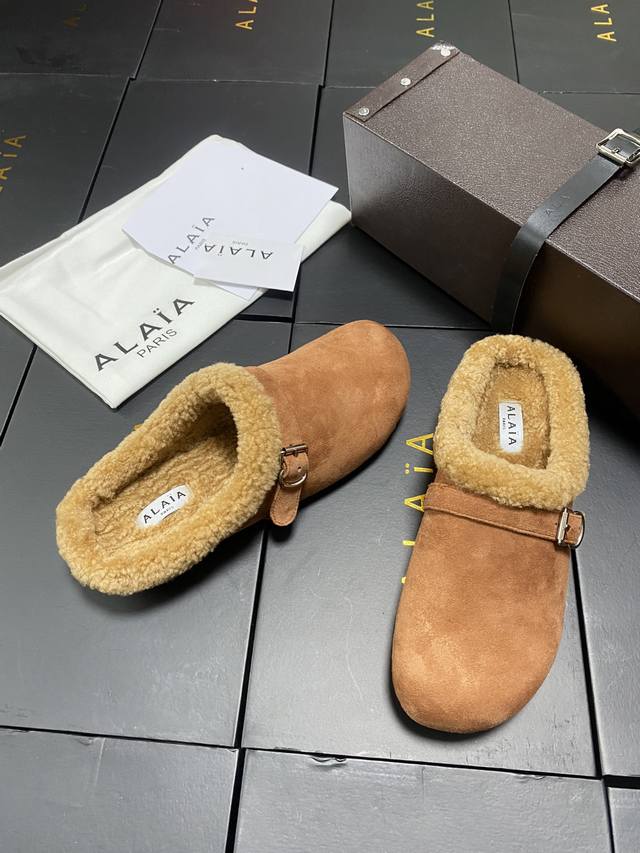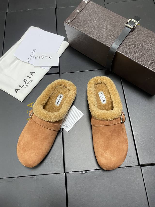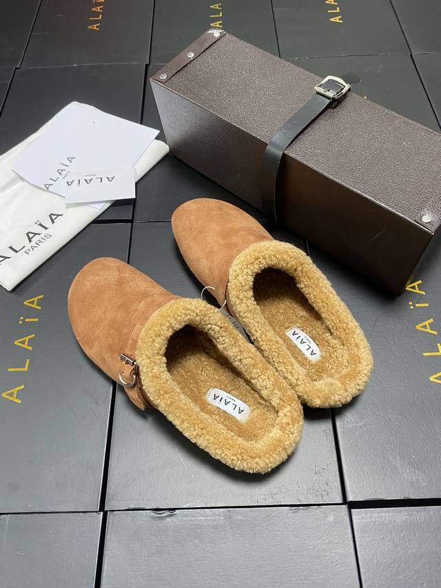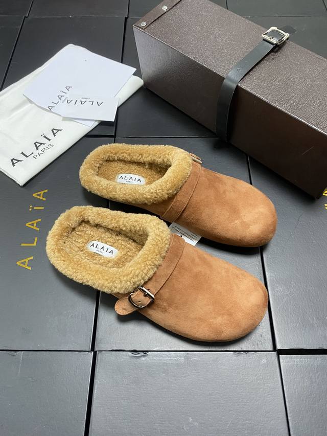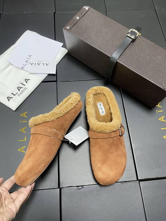 / 原盒+10 Alaia 平底芭蕾舞平底拖鞋! 人气超高的一款羊羔毛里拖鞋,浪漫又迷人舒适百搭。穿脱方便。 面料 羊京 羊皮内里,私模橡胶防滑大底, 码数:35-