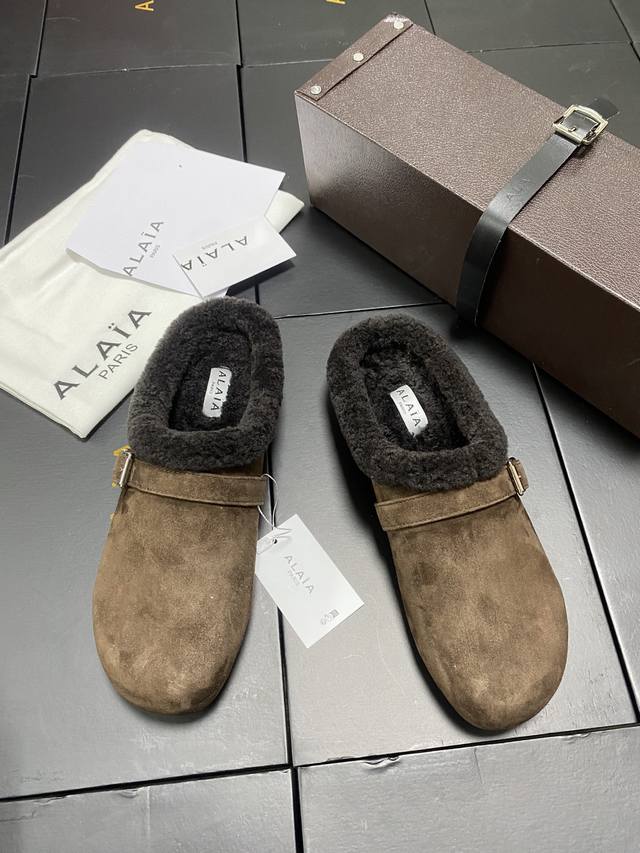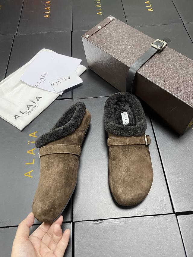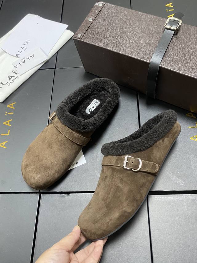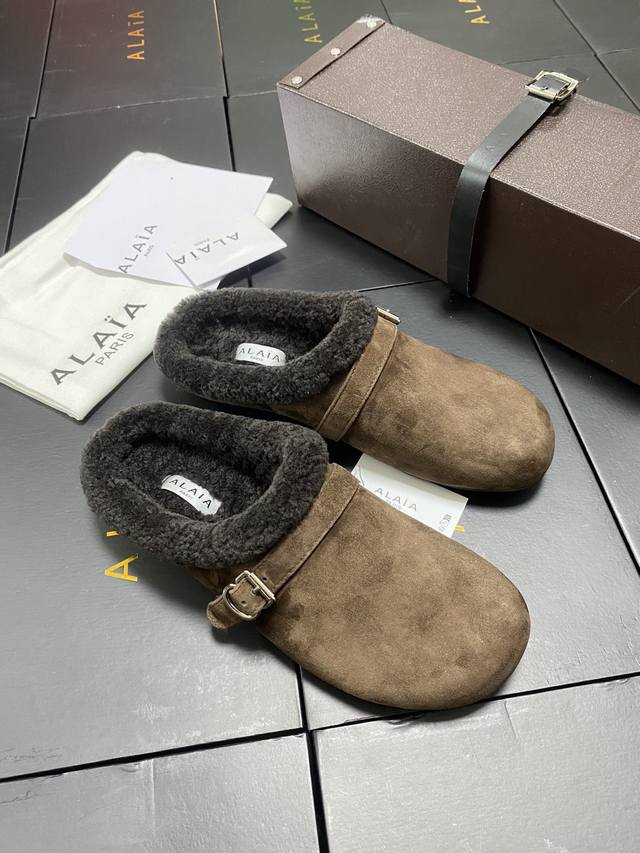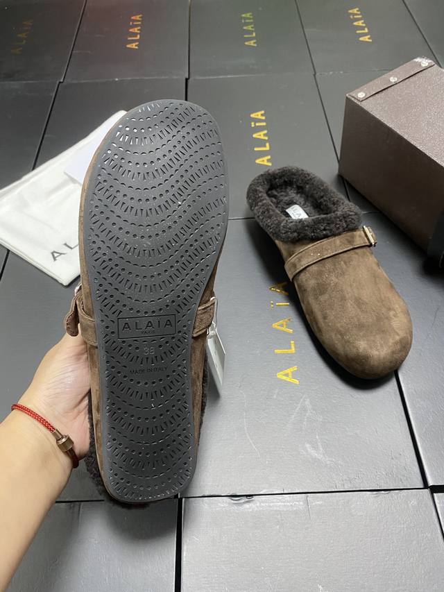 / 原盒+10 Alaia 平底芭蕾舞平底拖鞋! 人气超高的一款羊羔毛里拖鞋,浪漫又迷人舒适百搭。穿脱方便。 面料 羊京 羊皮内里,私模橡胶防滑大底, 码数:35-
