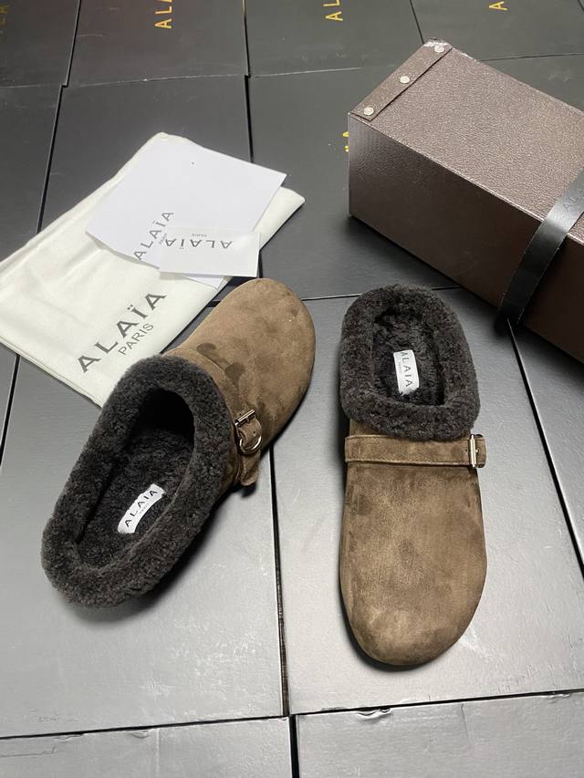 原盒+10 Alaia 平底芭蕾舞平底拖鞋! 人气超高的一款羊羔毛里拖鞋,浪漫又迷人舒适百搭。穿脱方便。 面料 羊京 羊皮内里,私模橡胶防滑大底, 码数:35-41 40 41 定做不退换