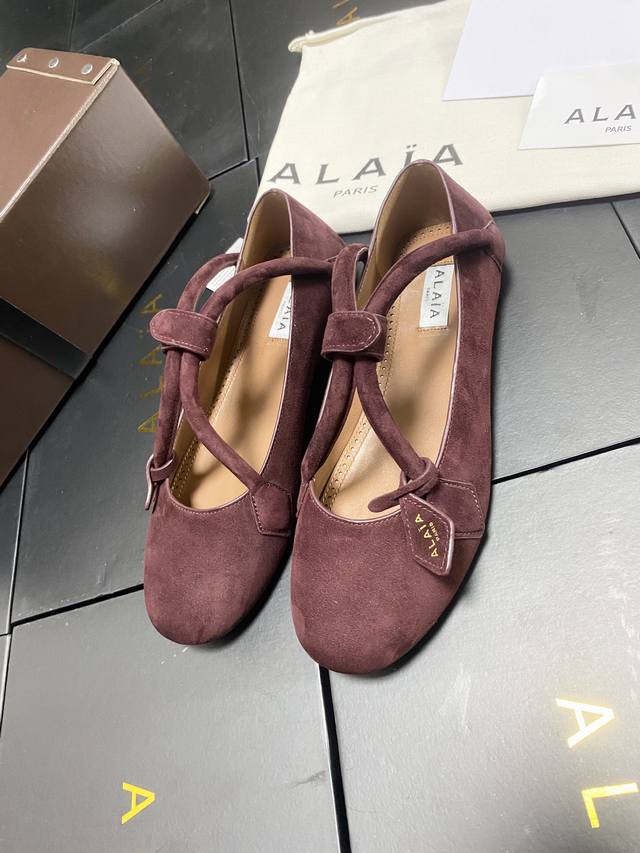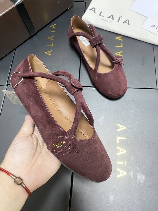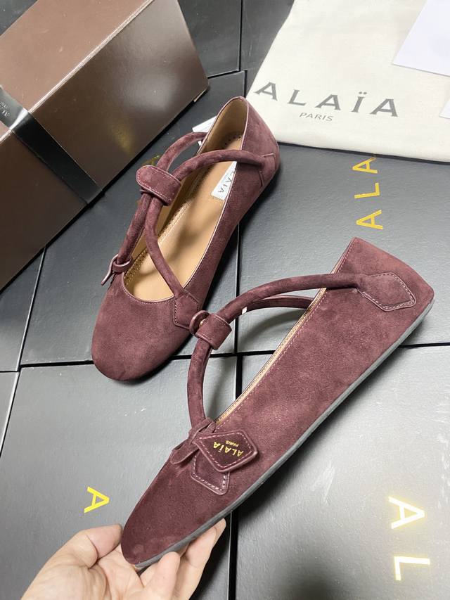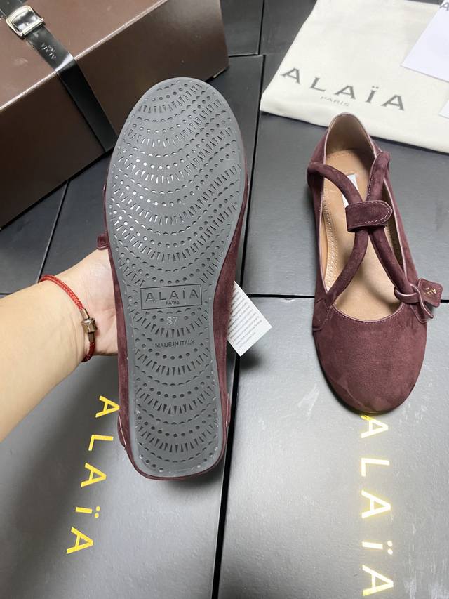 原盒+10 Alaia 走秀款平底芭蕾舞平底单鞋! 甜酷芭蕾风,人气超高的一款芭蕾舞鞋,浪漫又迷人舒适百搭。 面料 酒红羊京 羊皮内里,私模橡胶防滑大底, 码数:35-42 40 41 42定做不退换