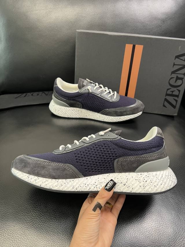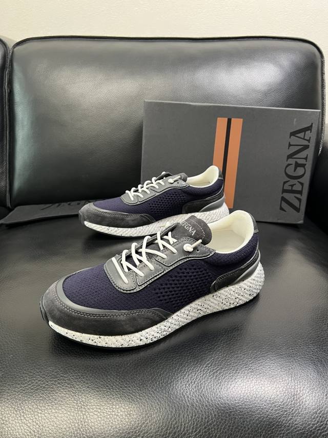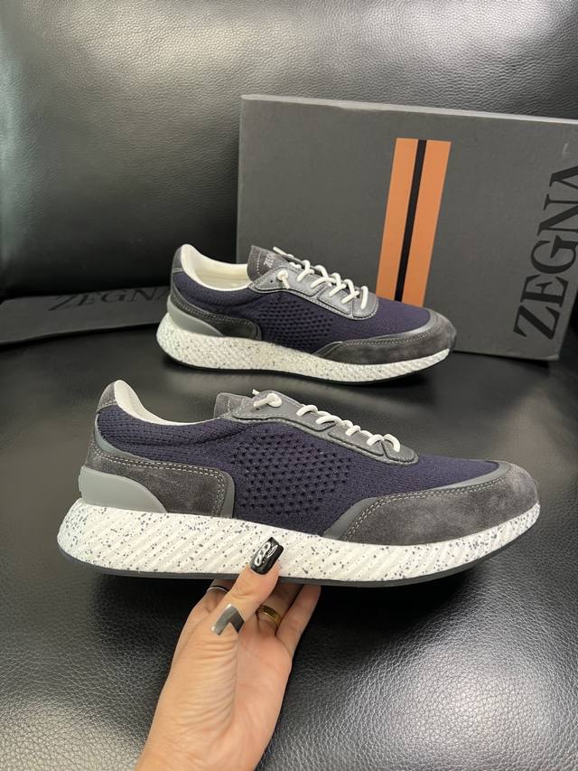 只换码不退 Zegna 高品质 顶级工艺品 杰尼亚 专柜新款原厂配置,意大利进口牛皮拼布面料,进口牛里垫,透气舒适,鞋底:原厂特供原版底超级舒适,原厂跟单货 欢