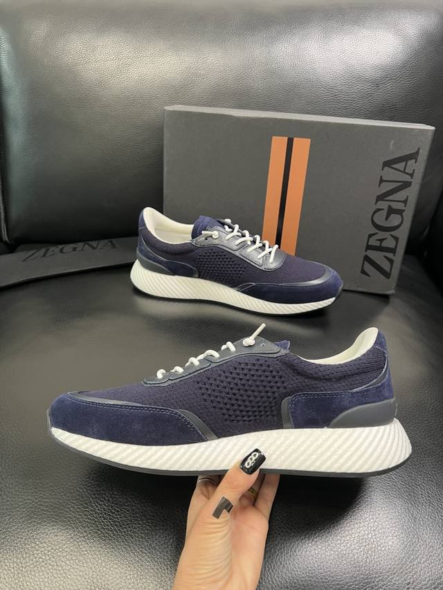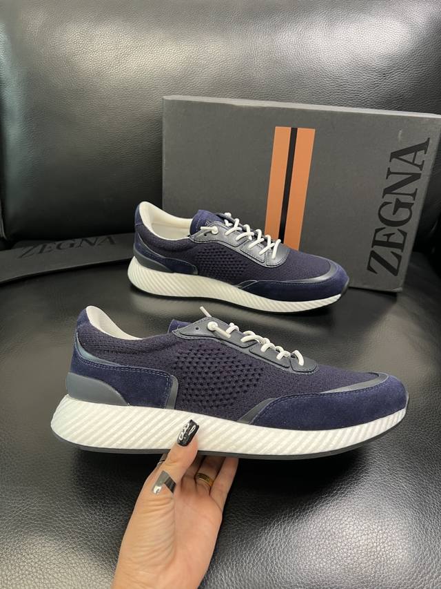 只换码不退 Zegna 高品质 顶级工艺品 杰尼亚 专柜新款原厂配置,意大利进口牛皮拼布面料,进口牛里垫,透气舒适,鞋底:原厂特供原版底超级舒适,原厂跟单货 欢