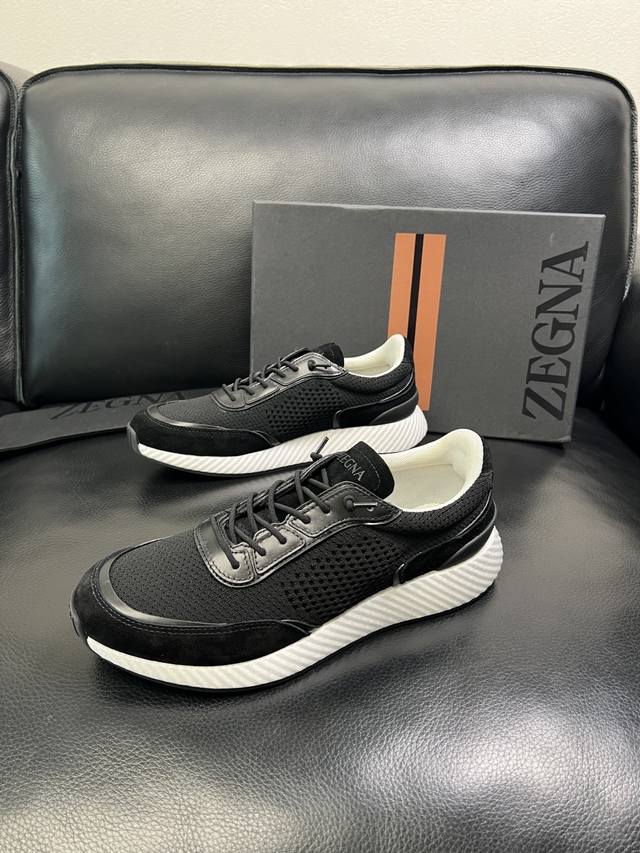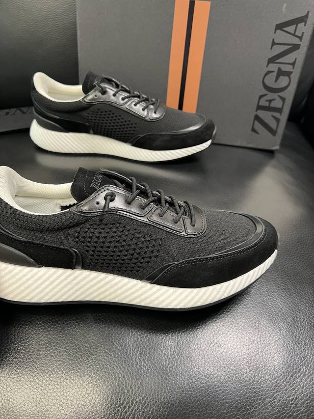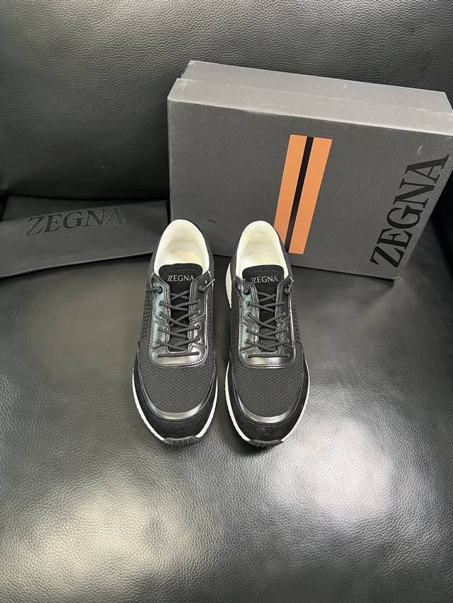 只换码不退 Zegna 高品质 顶级工艺品 杰尼亚 专柜新款原厂配置,意大利进口牛皮拼布面料,进口牛里垫,透气舒适,鞋底:原厂特供原版底超级舒适,原厂跟单货 欢