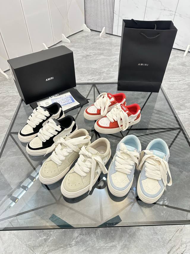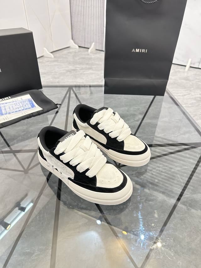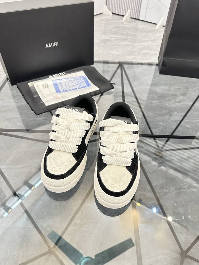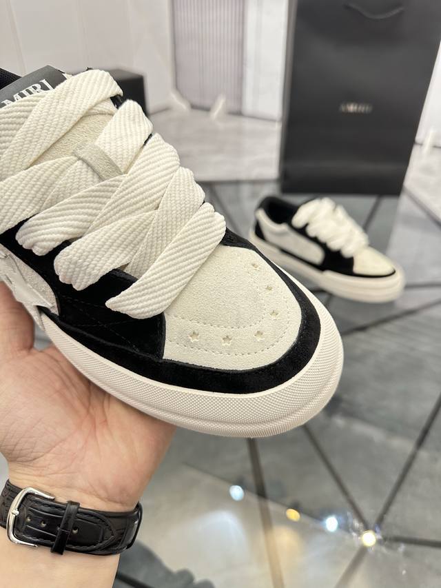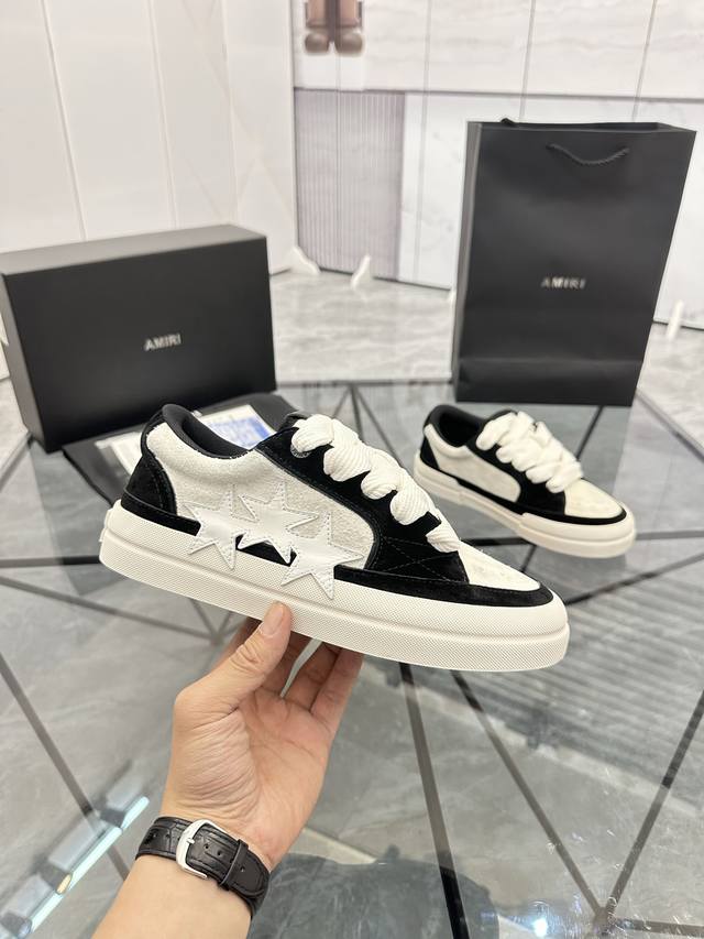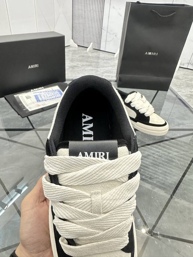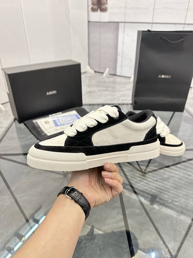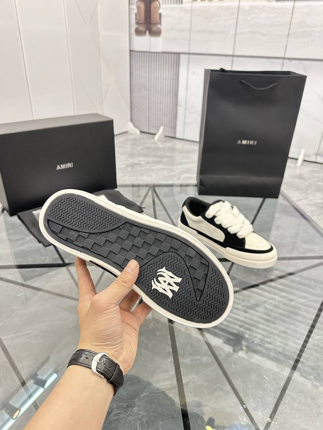 / 售 价: 广州顶级品质商品商标:AMIRI* 埃米尔*]低帮休闲鞋正码码数: 39-44 可订做45 商品材料:鞋面进口头层牛皮拼接磨砂皮,透气内里,原版大底。