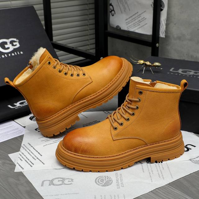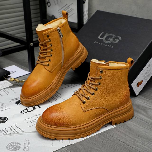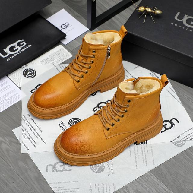 商品商标: Ugg 冬季高帮鞋 正码码数: 38-44 45定做不退换 商品材料:精选优质荔纹擦色牛皮鞋面 真羊毛内里 橡胶大底