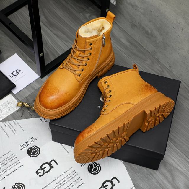 商品商标: Ugg 冬季高帮鞋 Ddd 正码码数: 38-44 45定做不退换 Ddd 商品材料:精选优质荔纹擦色牛皮鞋面 真羊毛内里 橡胶大底 DDD