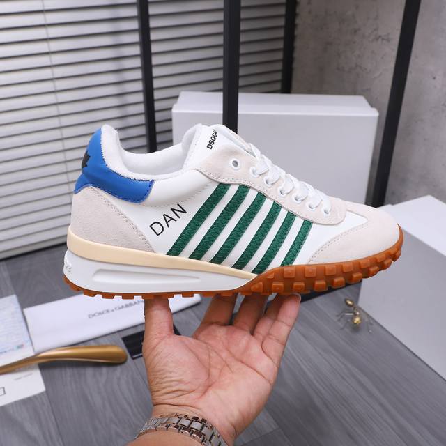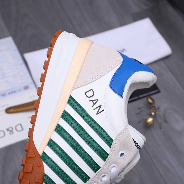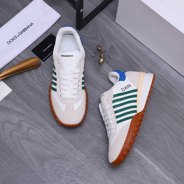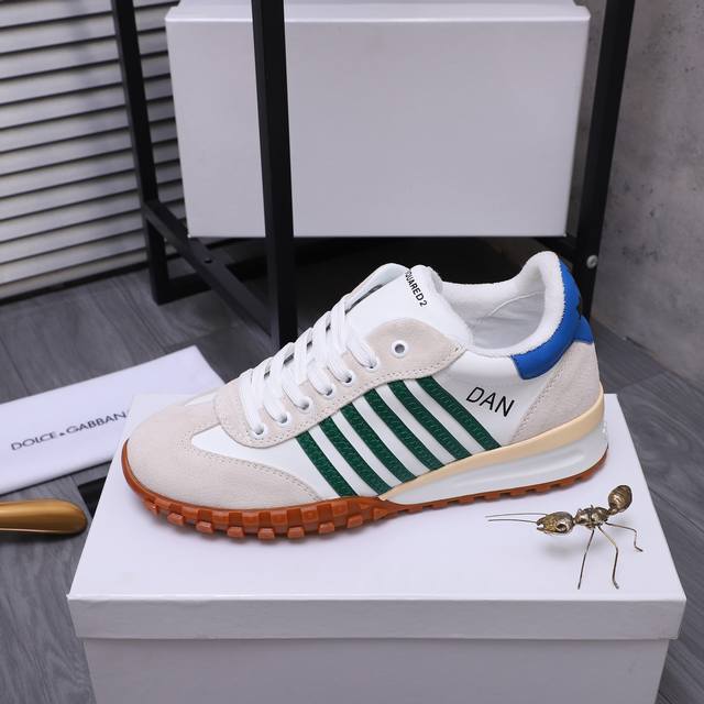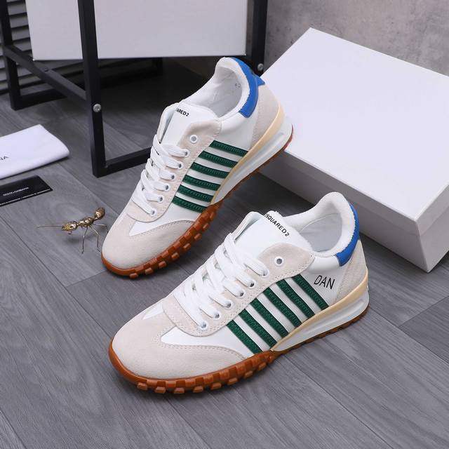 商品商标:Dsquared2 休闲男鞋 正码码数: 38-46 商品材料:精选磨砂牛皮拼接牛皮鞋面 短绒内里 牛皮鞋垫 原版大底