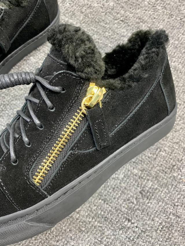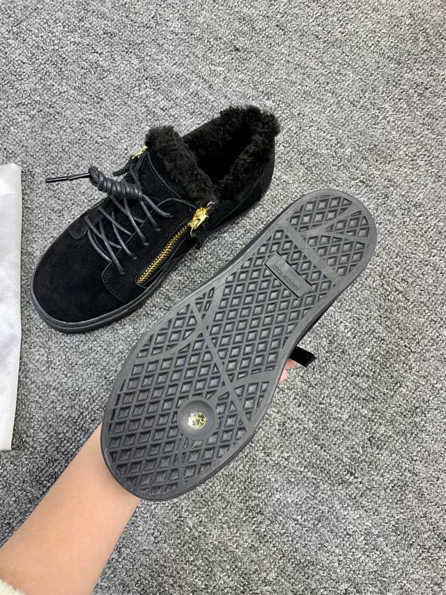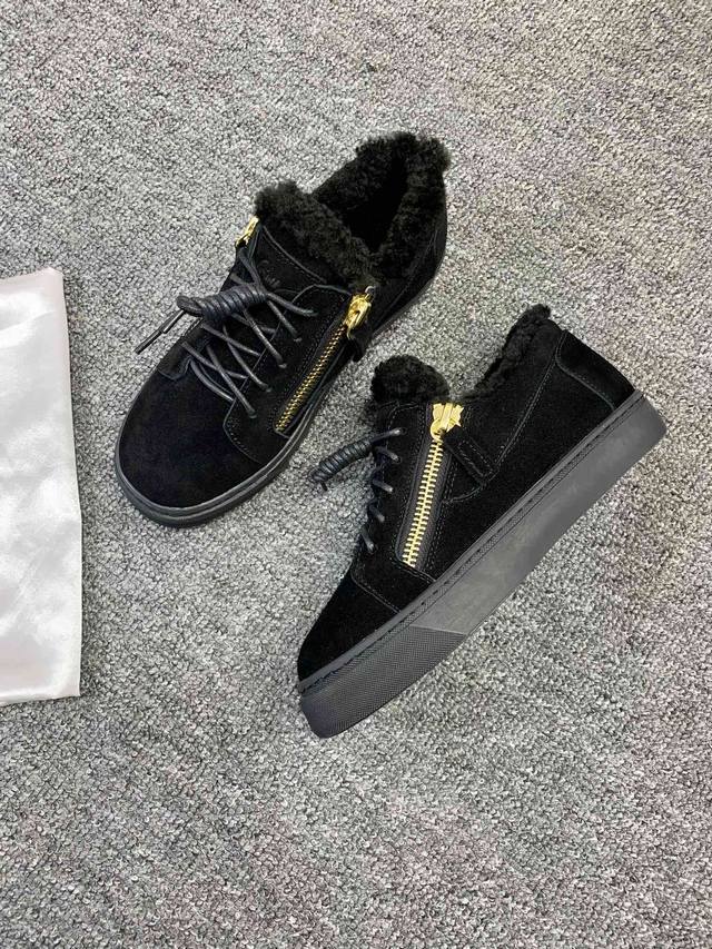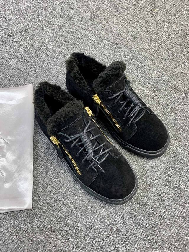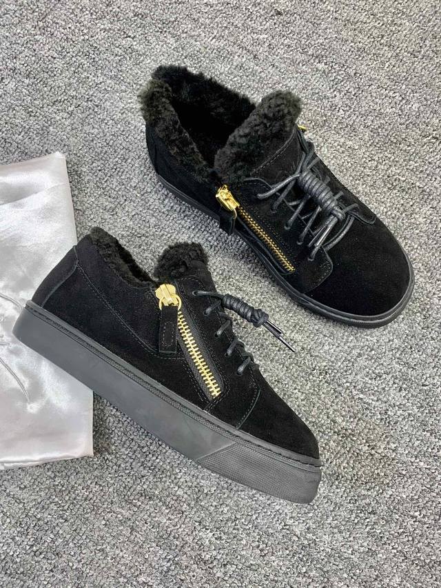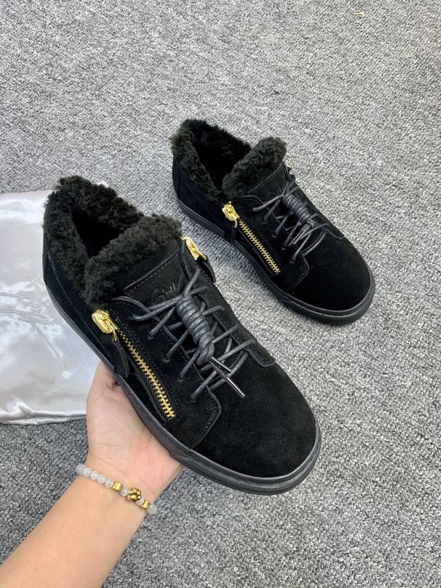 / 定做款实价 ,低帮红黑色,羊毛里!最新最高版本!重新开模定制! 里外全牛皮 情侣款Giuseppe Zanotti 朱塞佩 萨诺第 高端单品原版高档合金属饰扣,