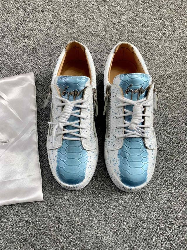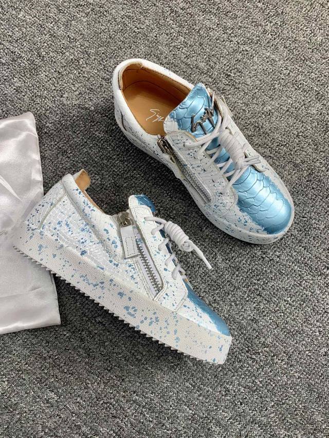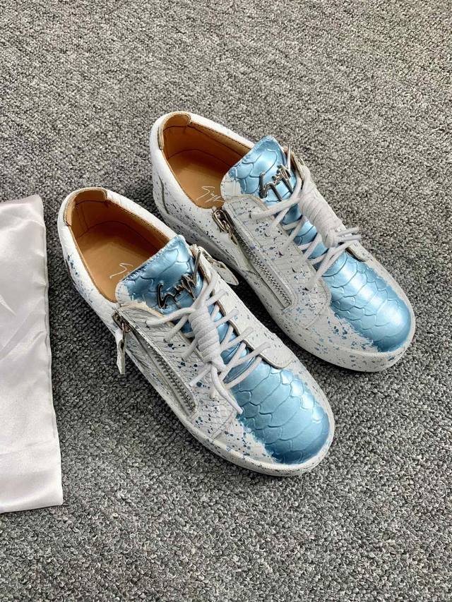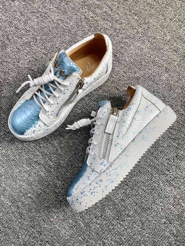 / 定做款实价 低帮蛇纹泼墨!最新最高版本!重新开模定制! 里外全牛皮 情侣款Giuseppe Zanotti 朱塞佩 萨诺第 高端单品原版高档合金属饰扣,头层小牛