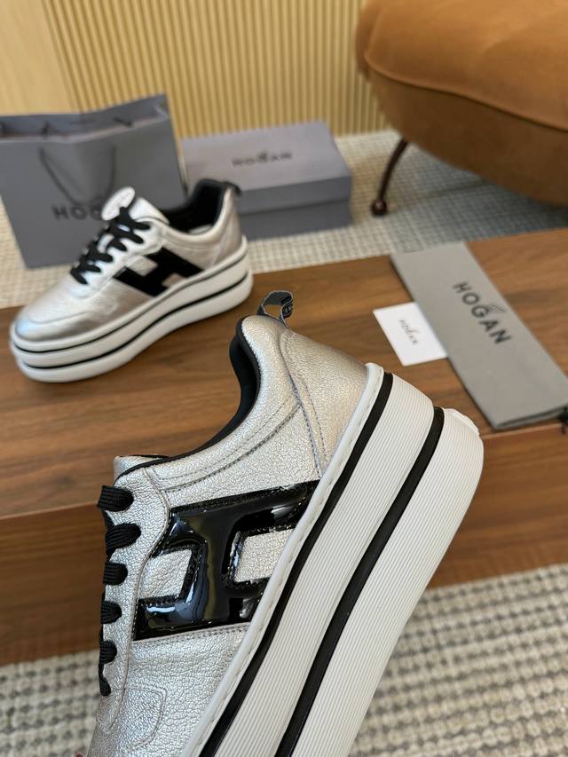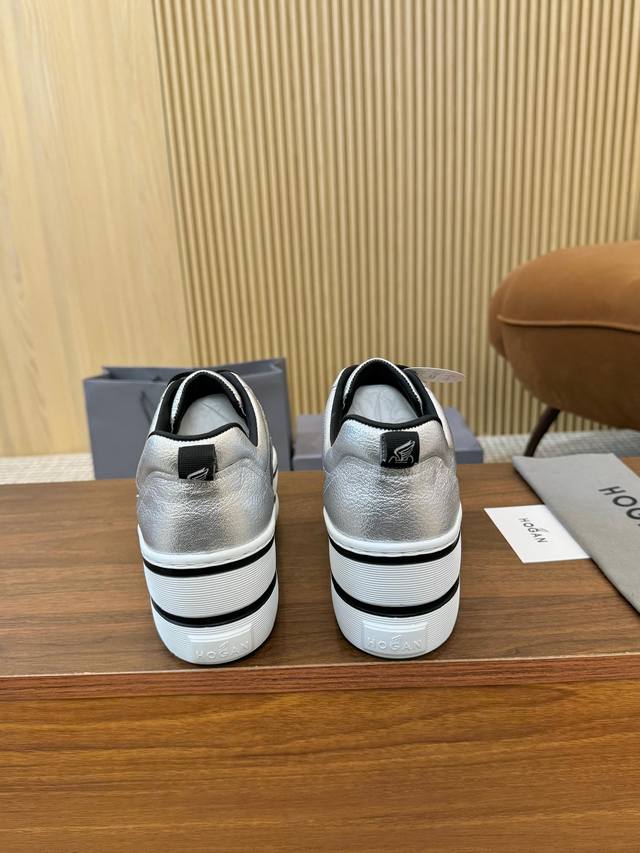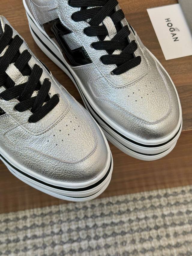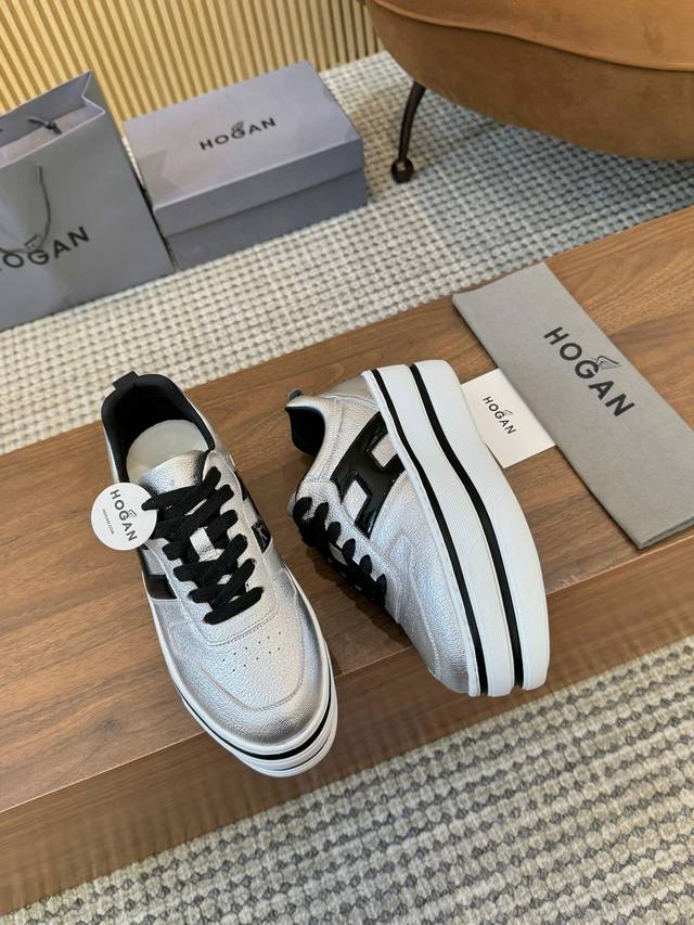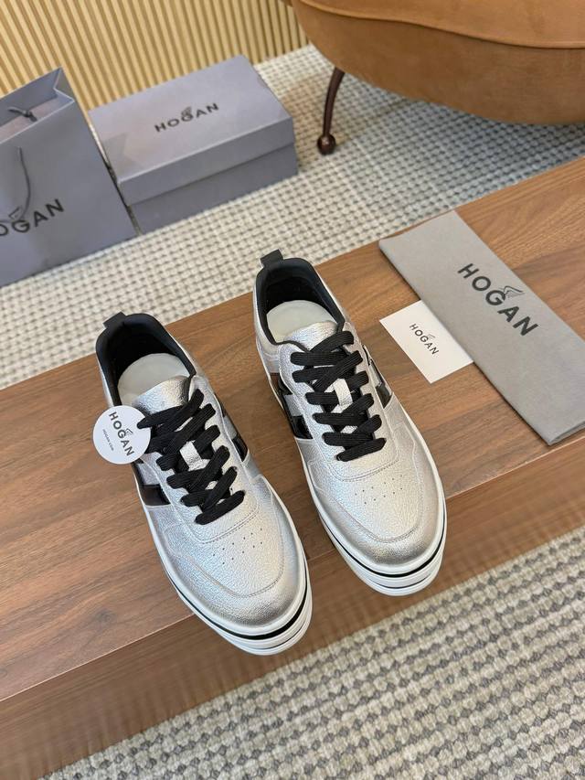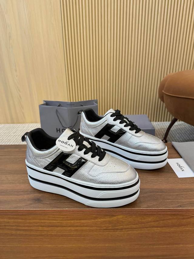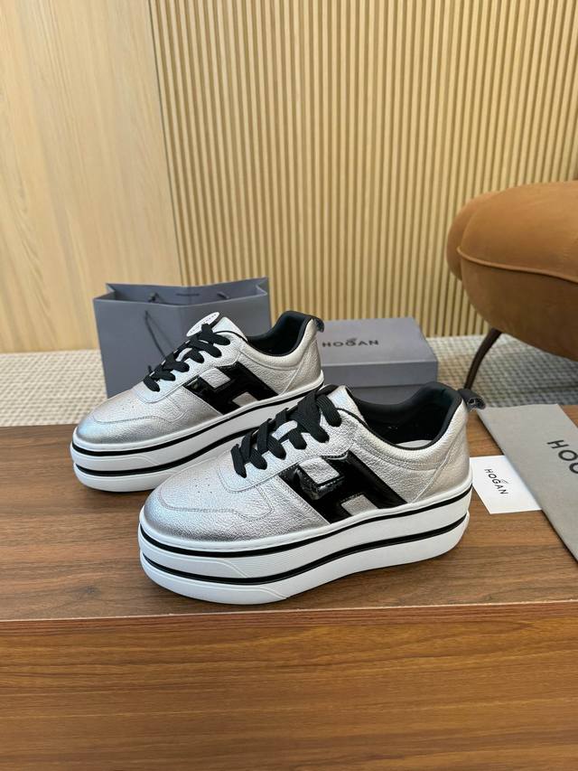 实价不让利 !爆爆爆 霍根Hogan新款, 女士时尚圆头系带运动休闲鞋,双层厚底,让你穿上瞬间长高70Mm。丝绸小牛皮撞色搭配,线条流畅勾画新时代的美感。高弹鞋垫让你的美脚边走路边按摩 ,一双时尚舒适的奢侈高品鞋你值得拥有 女鞋。码35-40码。 DDD