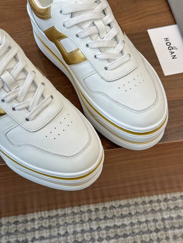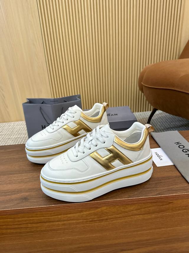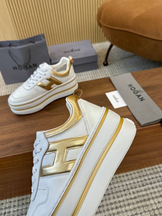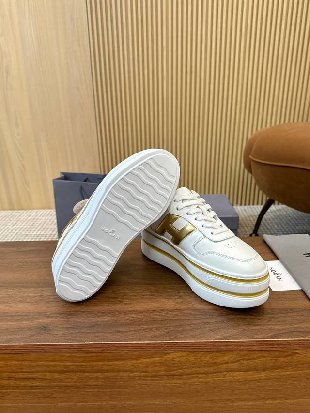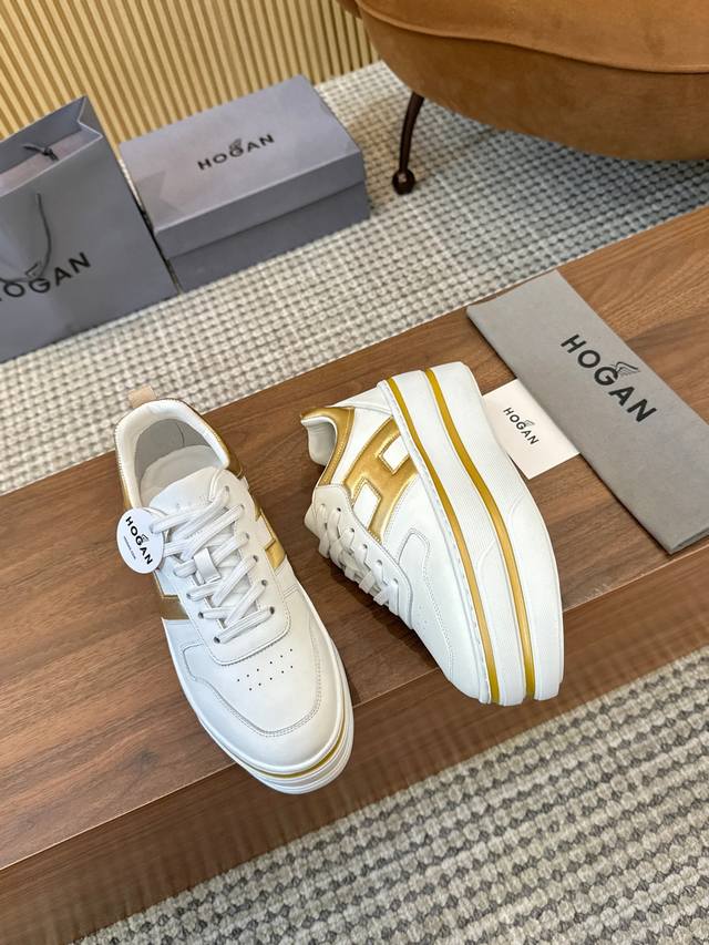 实价不让利 !爆爆爆 霍根Hogan新款, 女士时尚圆头系带运动休闲鞋,双层厚底,让你穿上瞬间长高70Mm。丝绸小牛皮撞色搭配,线条流畅勾画新时代的美感。高弹鞋垫让你的美脚边走路边按摩 ,一双时尚舒适的奢侈高品鞋你值得拥有 女鞋。码35-40码。 DDD