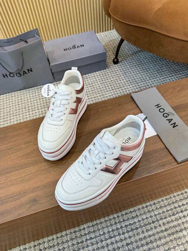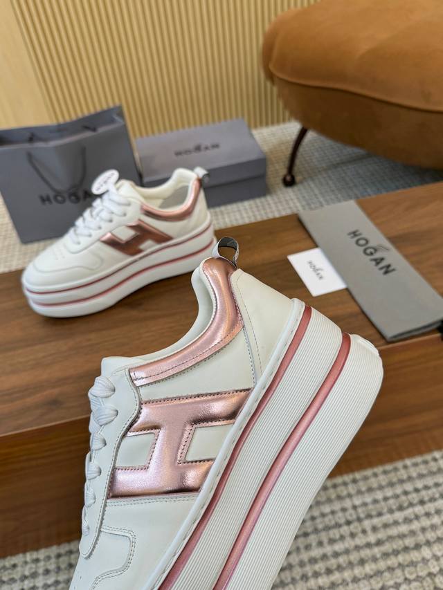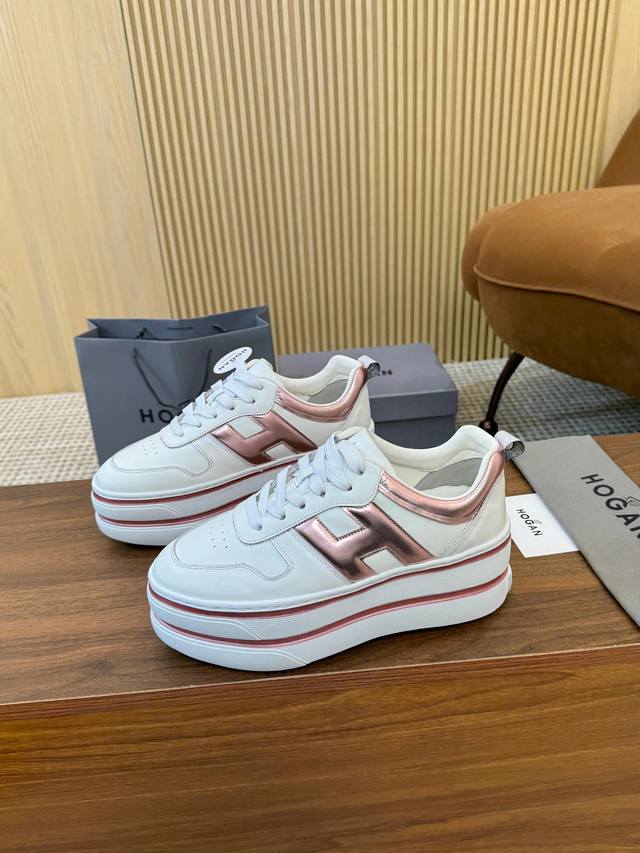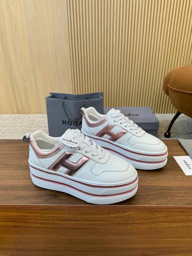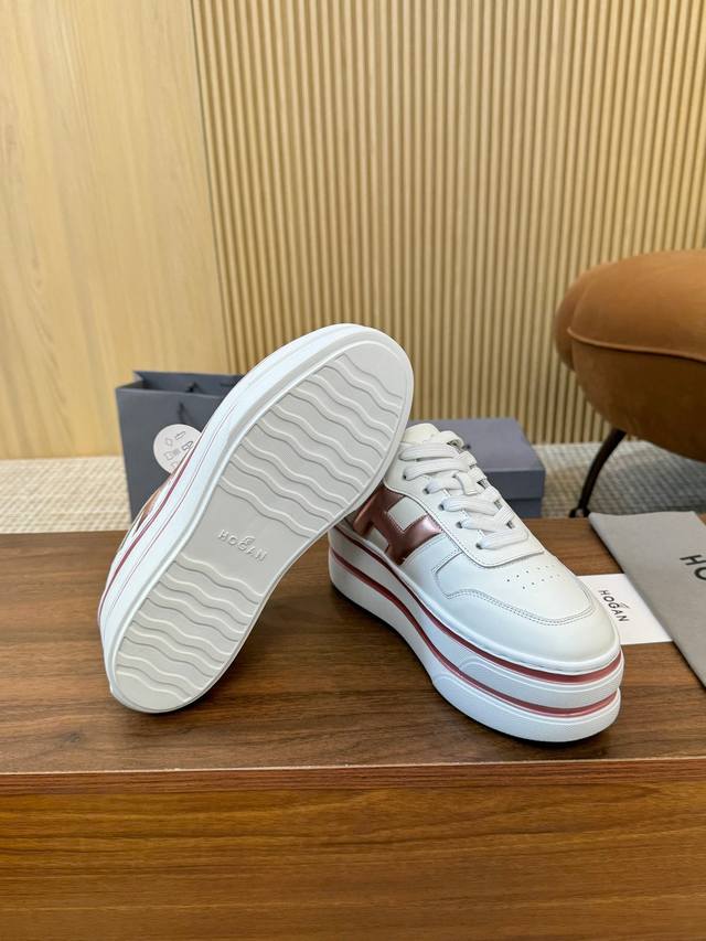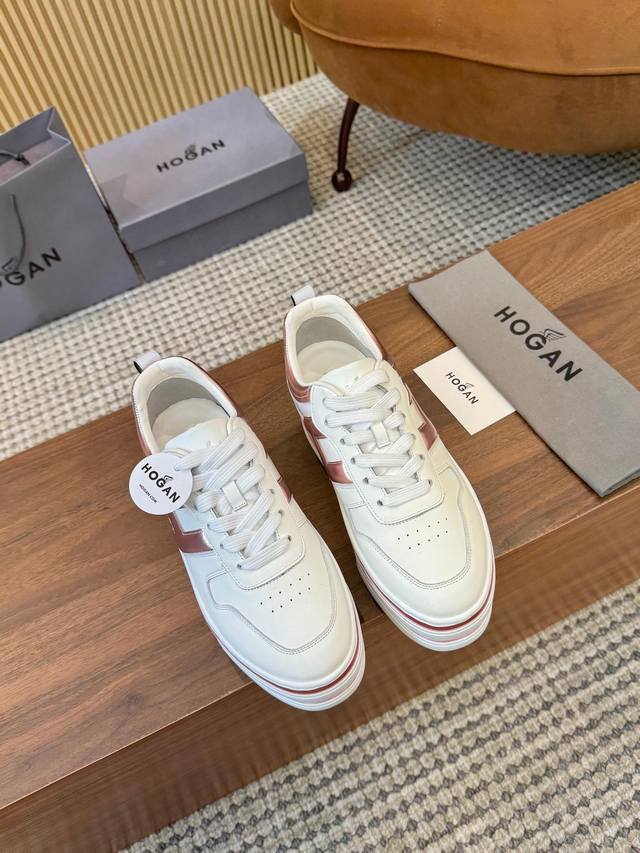实价不让利 !爆爆爆 霍根Hogan新款, 女士时尚圆头系带运动休闲鞋,双层厚底,让你穿上瞬间长高70Mm。丝绸小牛皮撞色搭配,线条流畅勾画新时代的美感。高弹鞋垫让你的美脚边走路边按摩 ,一双时尚舒适的奢侈高品鞋你值得拥有 女鞋。码35-40码。 DDD