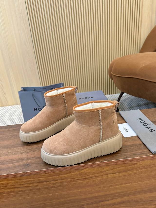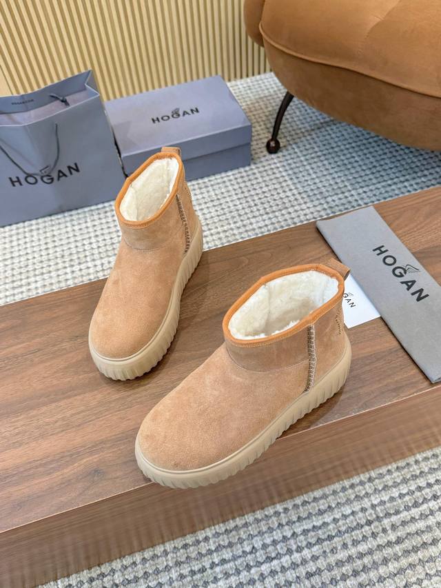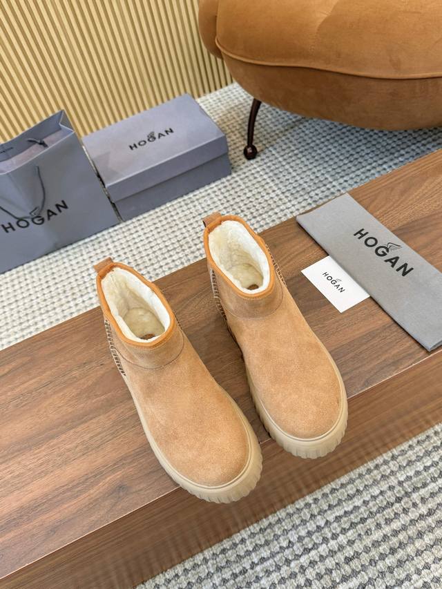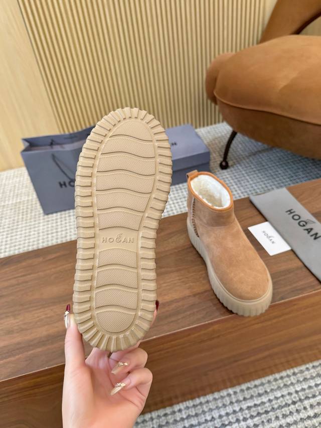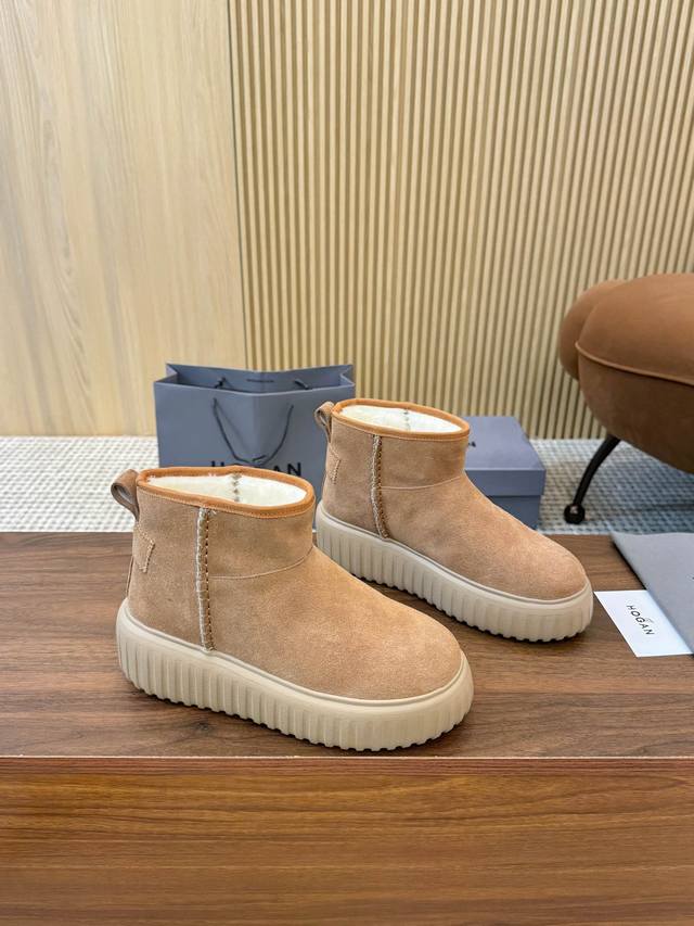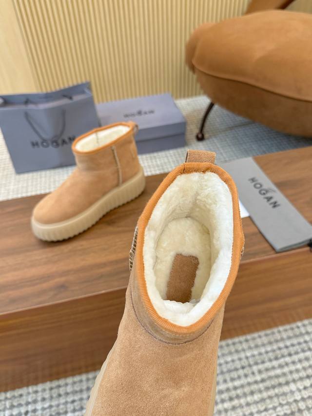 / 实价 爆爆爆 霍根Hogan新款, 女士时尚圆头真皮羊毛短靴,运动休闲,厚底让你穿上瞬间长高55Mm。绒面小牛皮手工拉线,新时代简约的美感 ,后置提鞋环,后置L